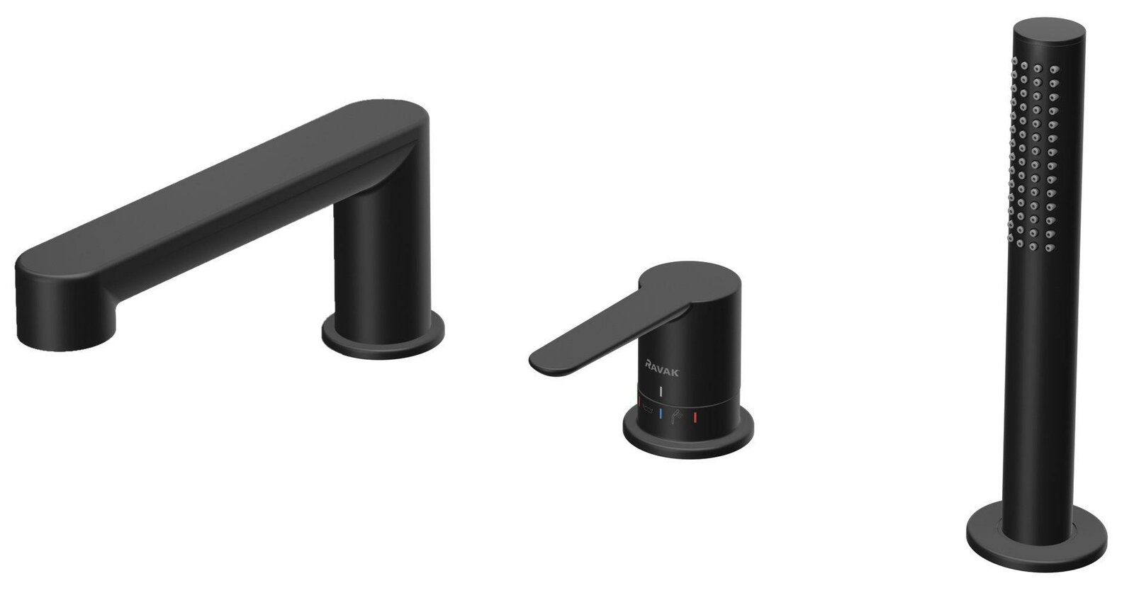Baterie Ravak Puri vanová, stojánková 3-otvorová, se sprchovým setem, černá, X070186