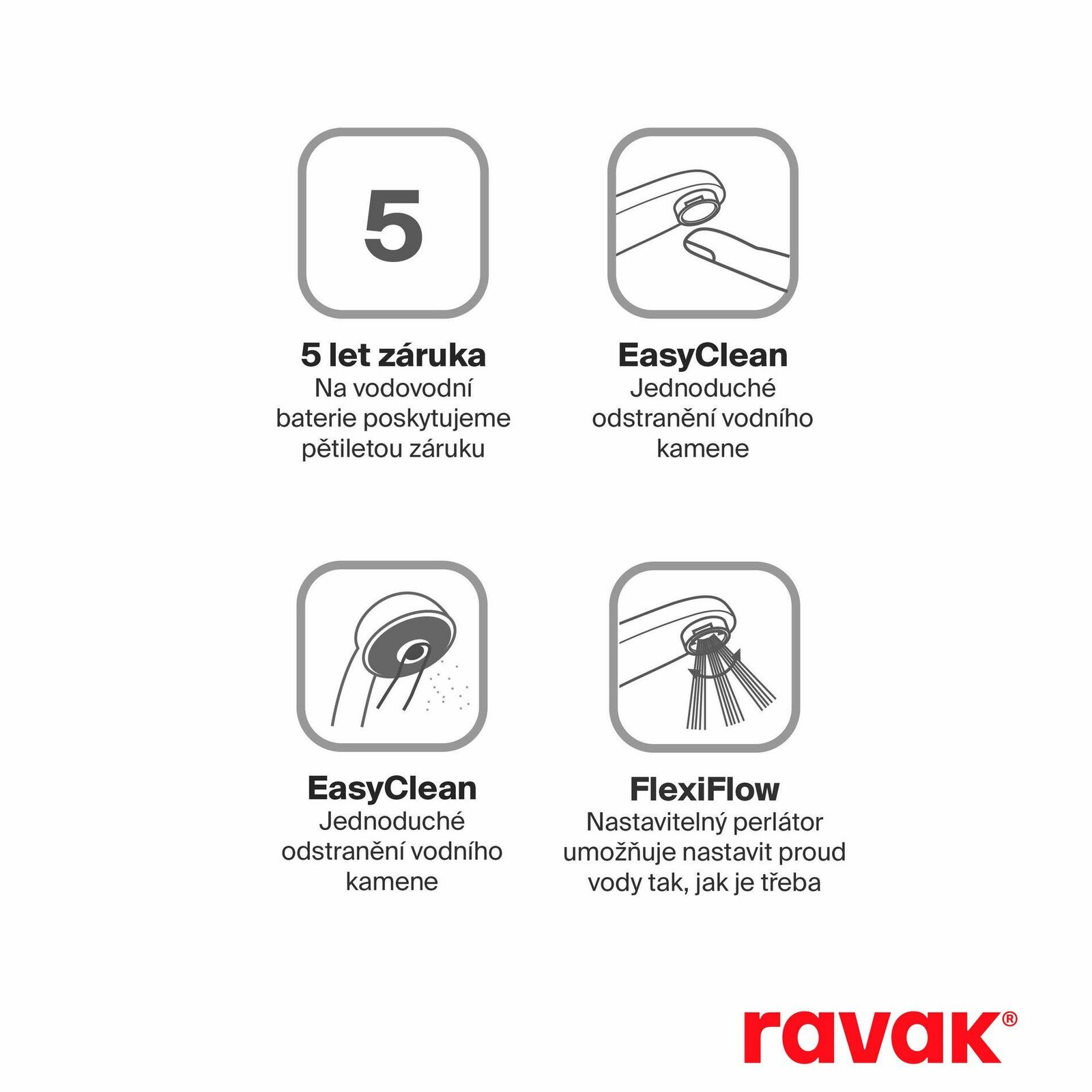 Pro ucelené řešení a designový soulad koupelny doporučujeme kombinovat s ostatními bateriemi Puri. Na vnější čištění doporučujeme používat čistící přípravek Ravak Cleaner Chrome.
