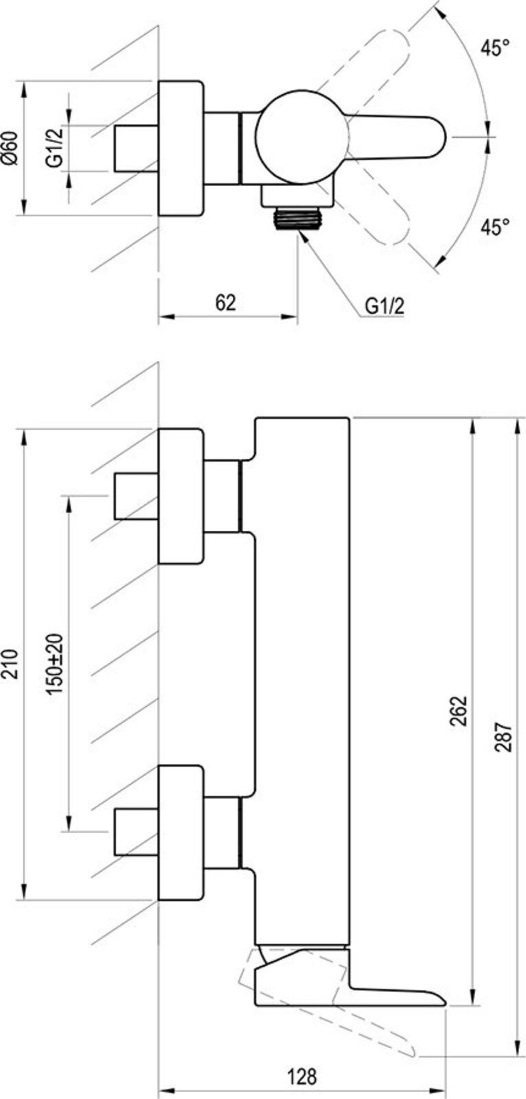 Nástěnná sprchová baterie Puri, bez sprchového setu. V černém provedení. S funkcí CoolFeel zabraňující nadměrnému ohřívání povrchu baterie.- rozteč baterie: 150 mm