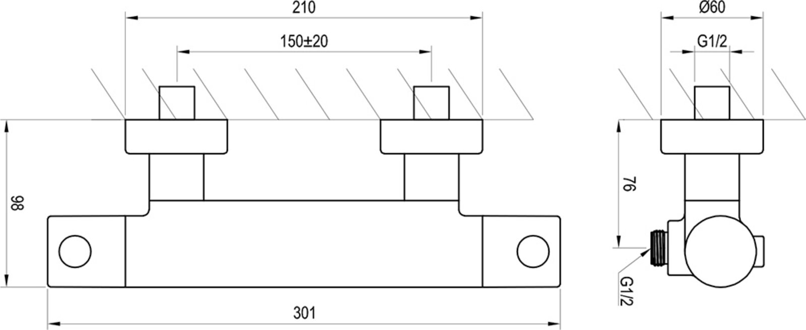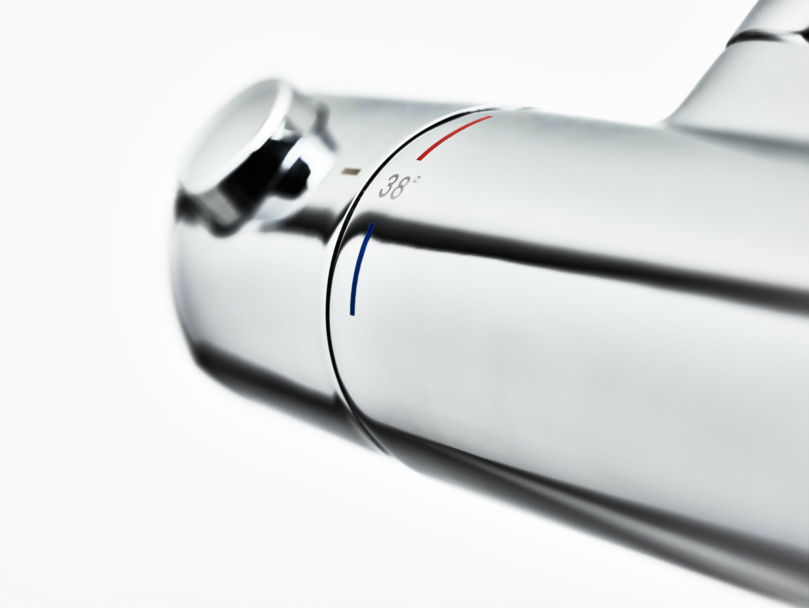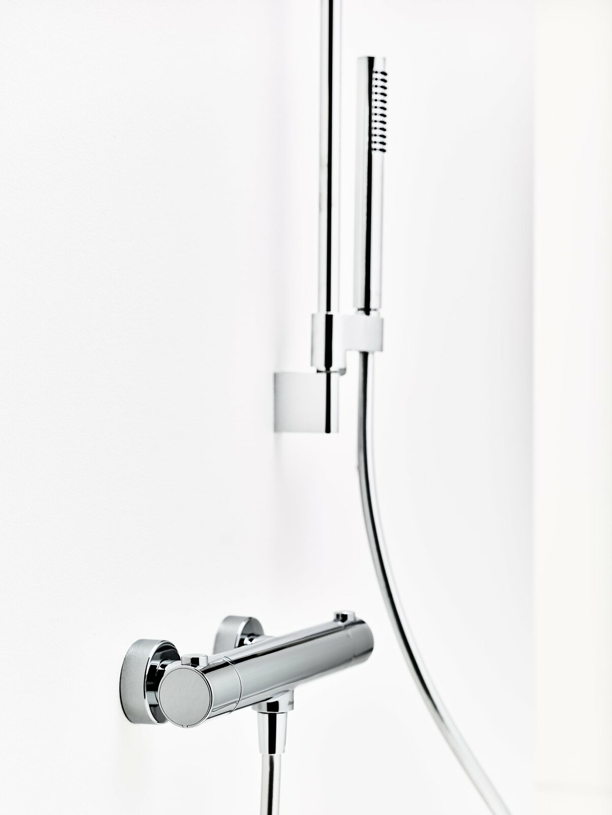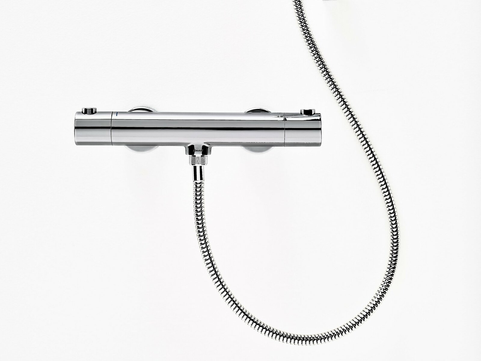 Termostatická nástěnná sprchová baterie Puri, bez sprchového setu. V chromovém provedení. Nastavení stálé teploty vody.- rozteč baterie: 150 mm