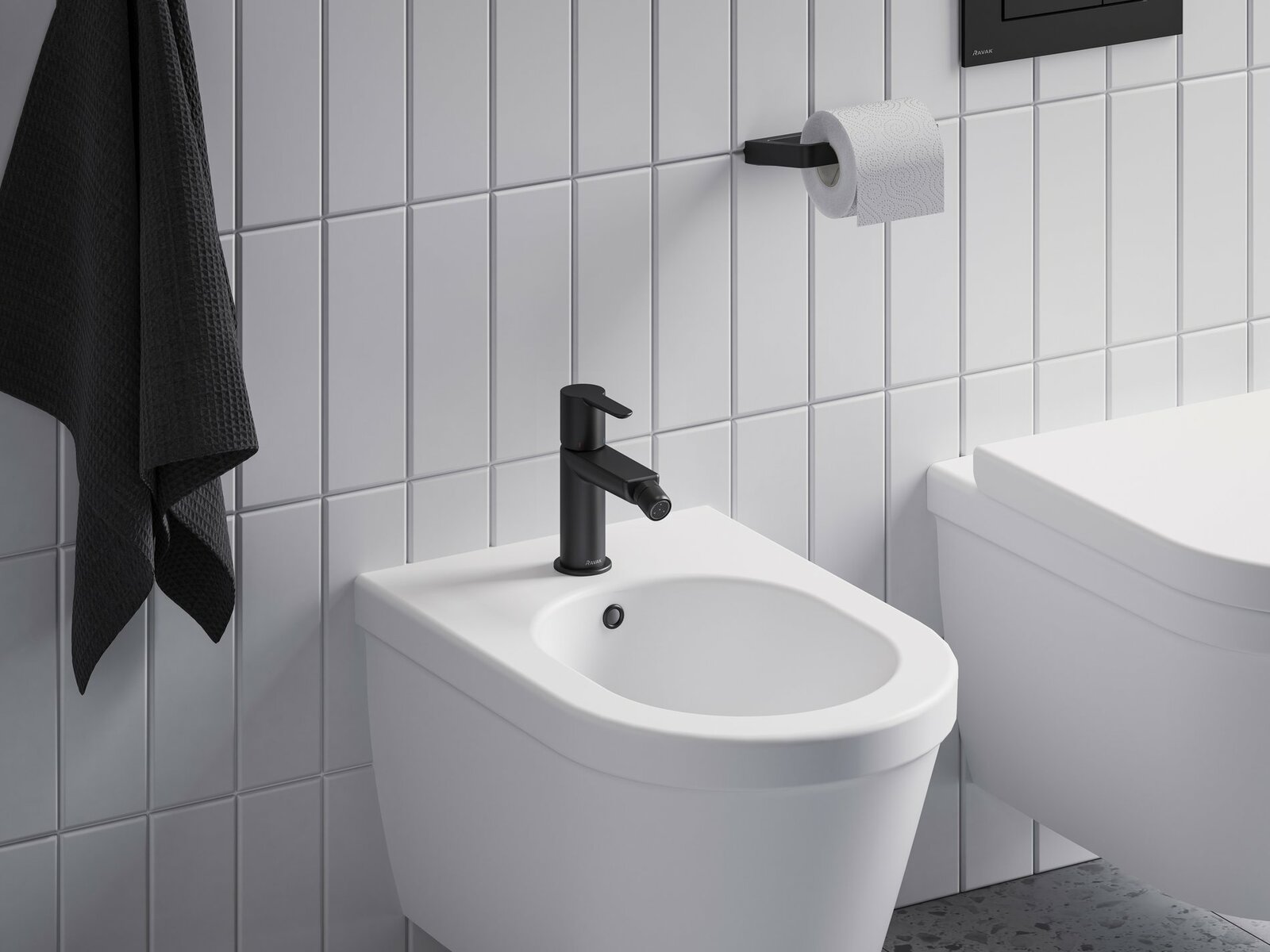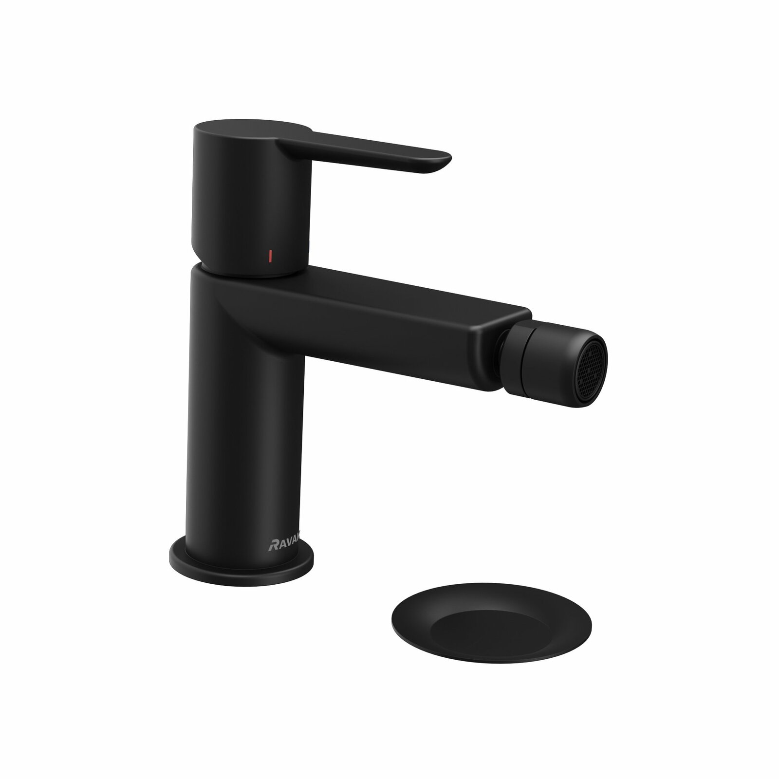 Bidetová stojánková baterie Puri s odtokovou soupravou Click-Clack. V černém provedení.- výška baterie: 151 mm