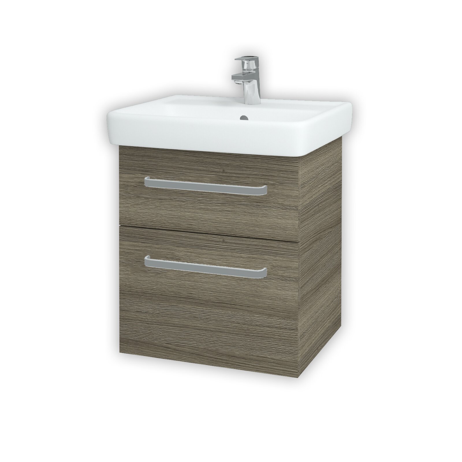 Svými rozměry se skříňka Q MAX SZZ2 55 hodí zejména do menších panelákových koupelen. Hlavní výhodou skříňky jsou ale dvě prostorné zásuvky, uložené na kvalitních výsuvech značky Hettich s jemným dovíráním a celoživotní zárukou. Do skříňky je zasazeno elegantní bílé keramické umyvadlo Q 55. Přední plocha zásuvek má ostré hrany.