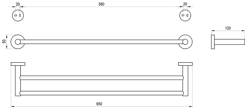 Ravak Kona držák ručníků 600mm dvojitý, černá mat, X07P1304