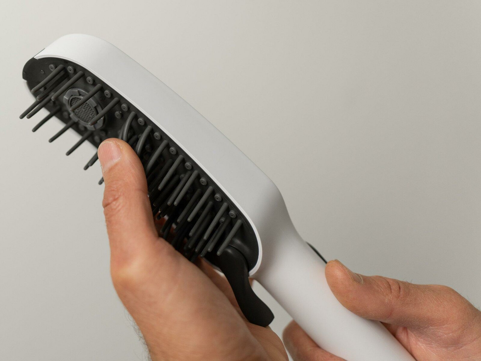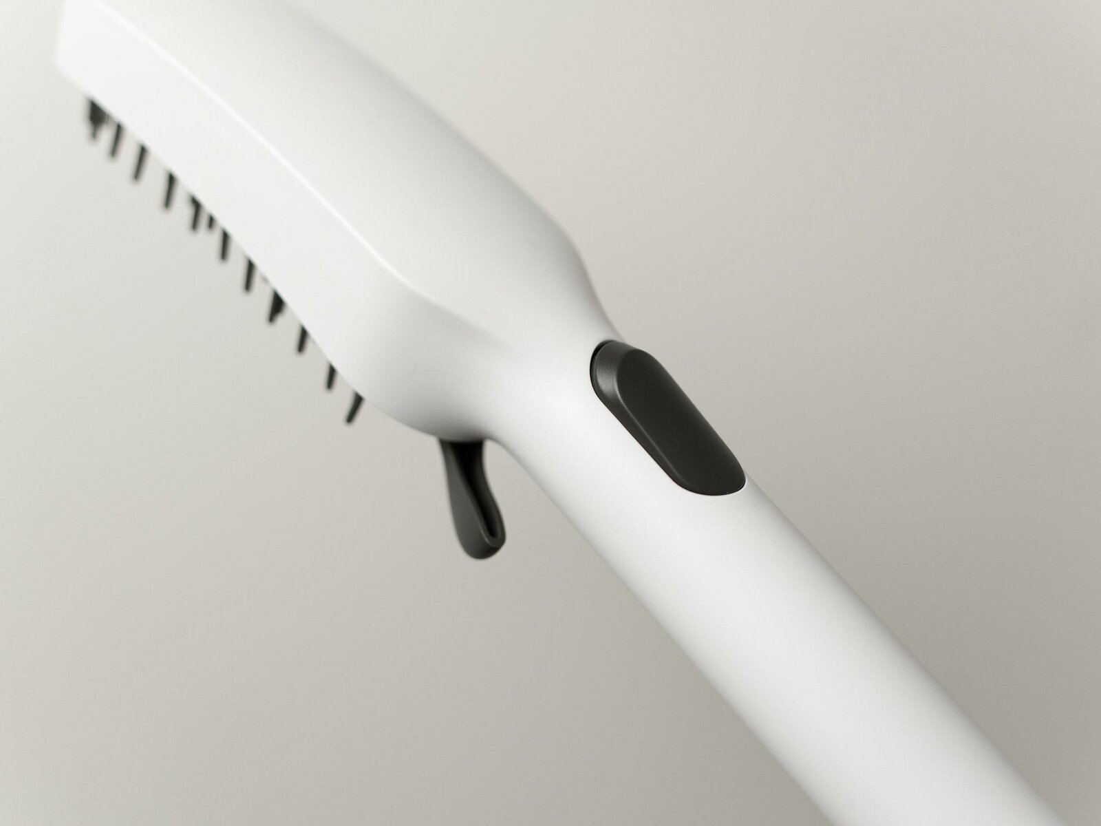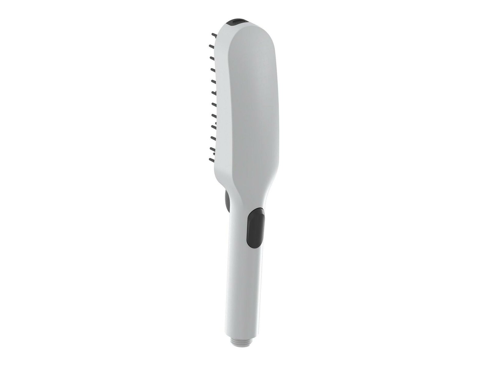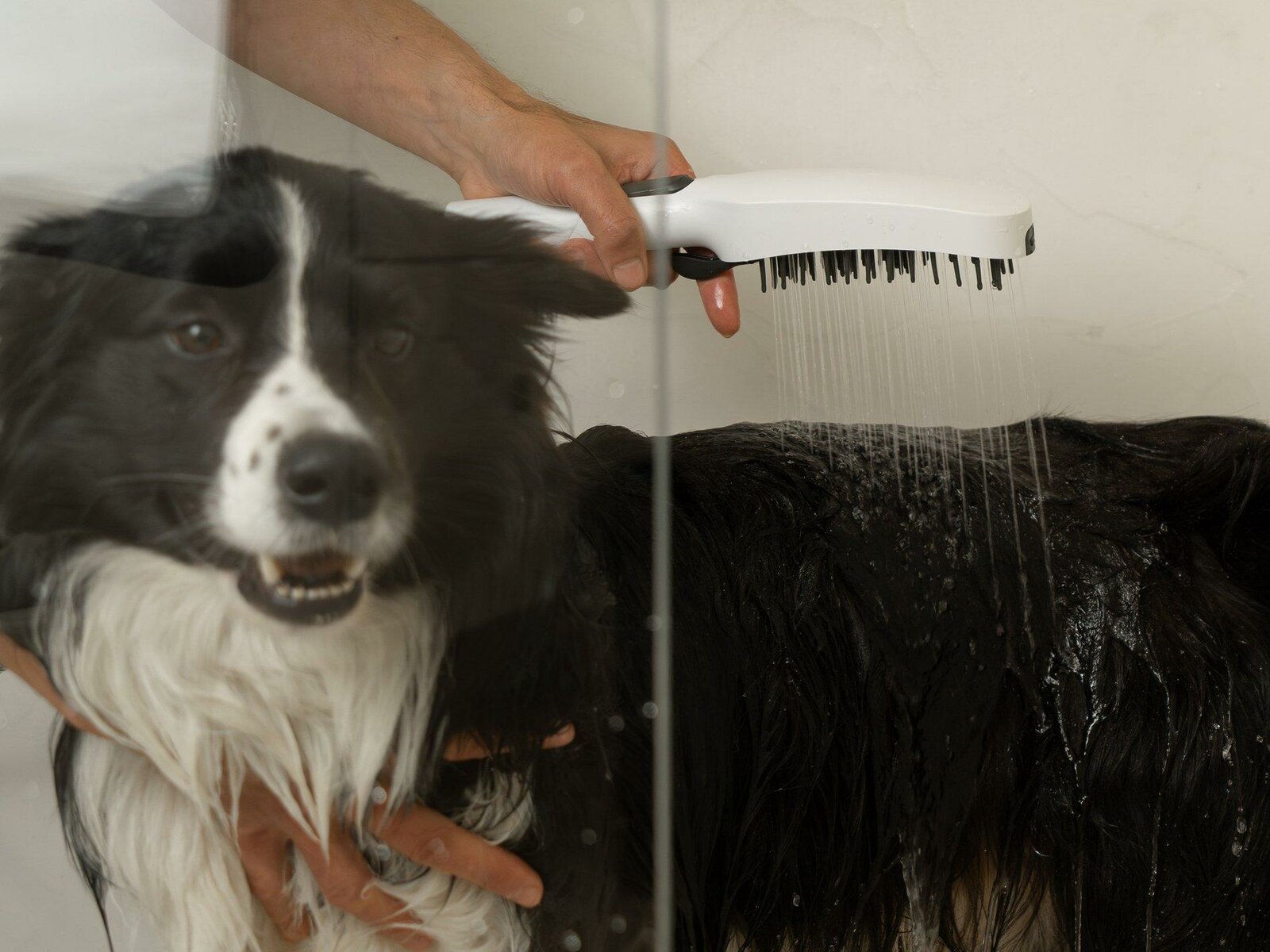 Pružný silikonový kartáč snadno rozčeše srst, napění šampón a odstraní nečistoty. Sprcha nabízí 4 režimy proudu, které snadno přepnete otočnou páčkou nebo tlačítkem. Proud Rain je mimořádně šetrný a hodí se zejména pro citlivé partie v okolí uší a očí. Soft proud je jemný, ale zároveň dostatečně silný pro napěnění a oplachování šampónu. Izolovaný proud s perlátorem je cílený a úsporný, ideální pro mytí tlapek, bříška nebo spodních partií bez zbytečného rozstřiku. Přední tlaková tryska, kterou lze ovládat samostatným tlačítkem na zadní straně, účinně odstraní odolné nečistoty, jako je například zaschlé bláto.