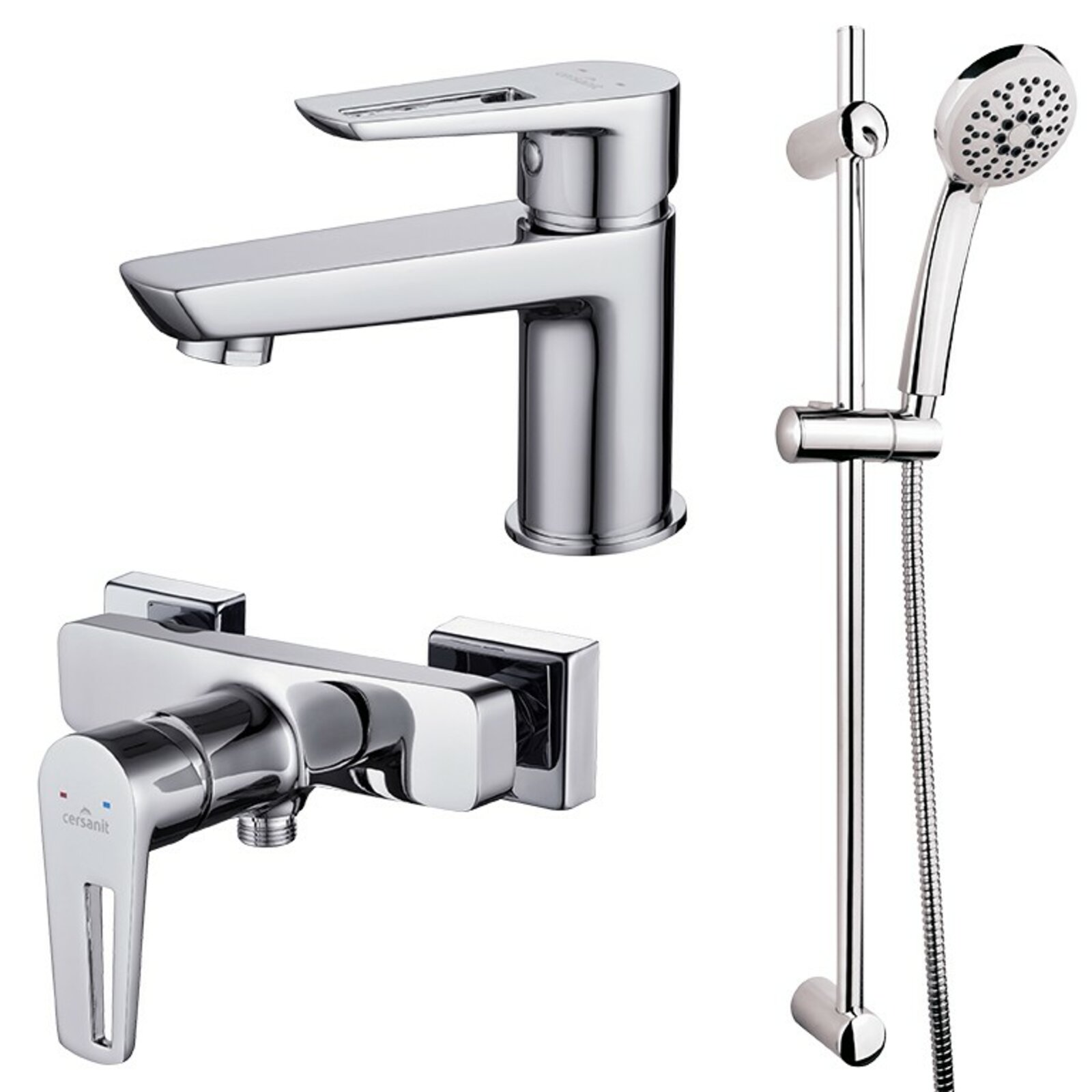 Set baterií Cersanit Mille umyvadlová a vanová, sprchová, sprchový set Vibe, chrom, S952‑004