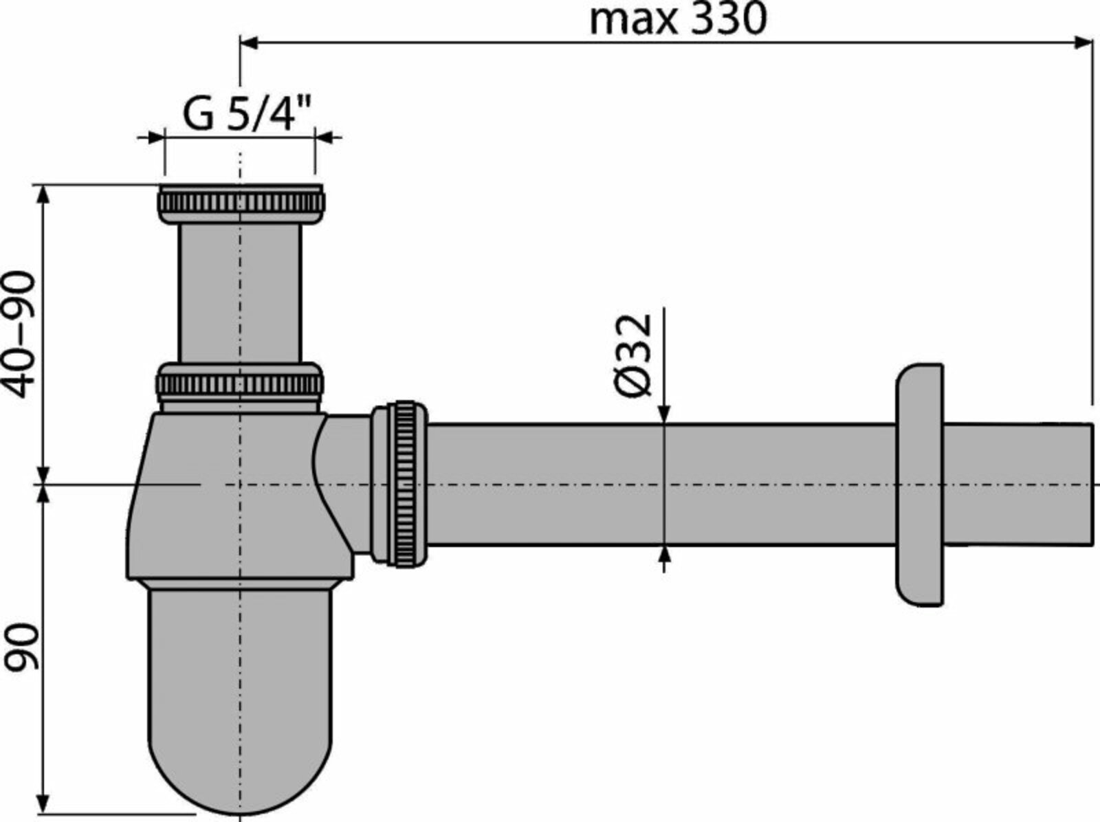 Sifon umyvadlový Alcadrain kov DN32 s převlečnou maticí 5/4", A431