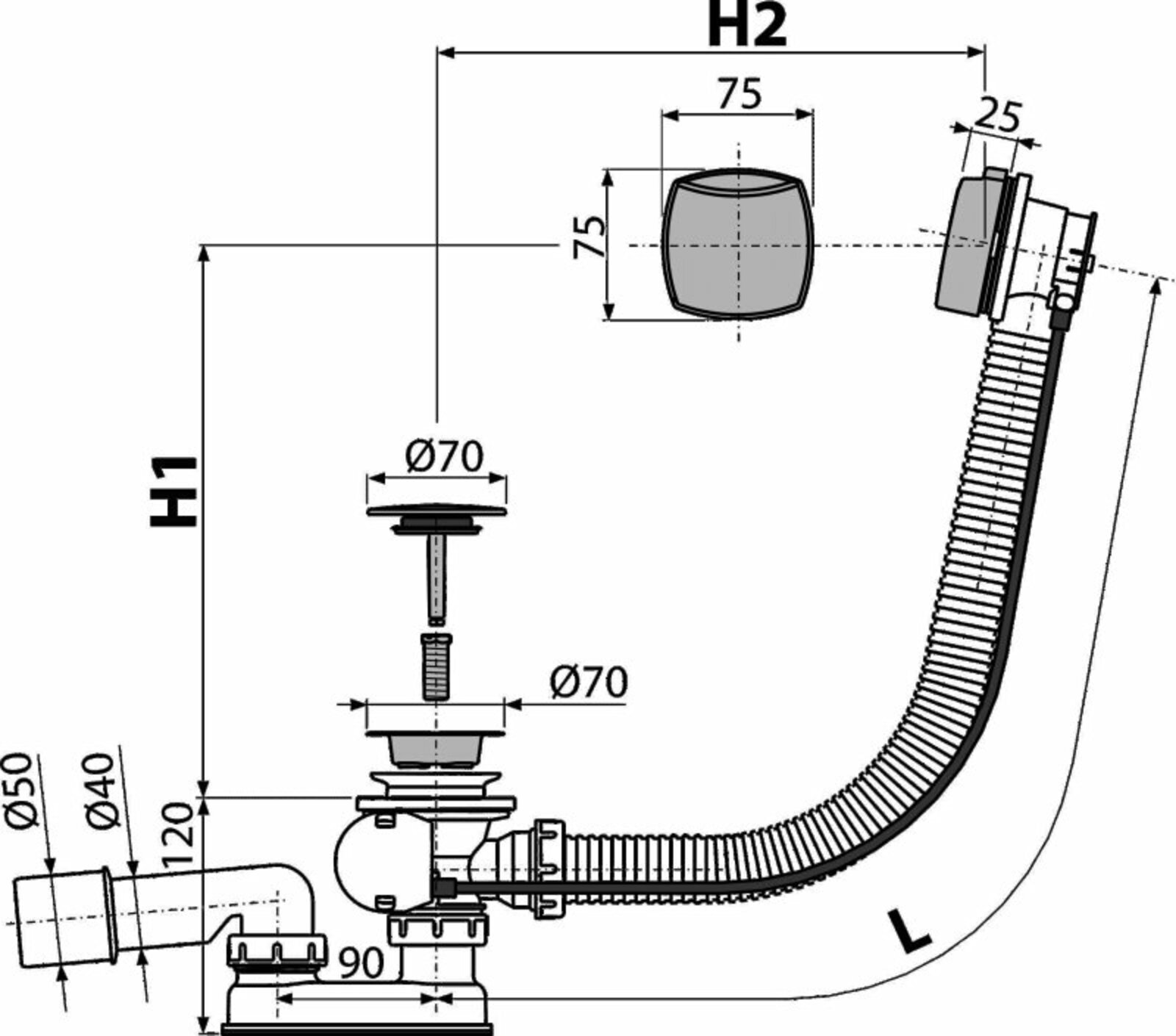 Sifon vanový Alcadrain chrom, automat komplet A51CRM