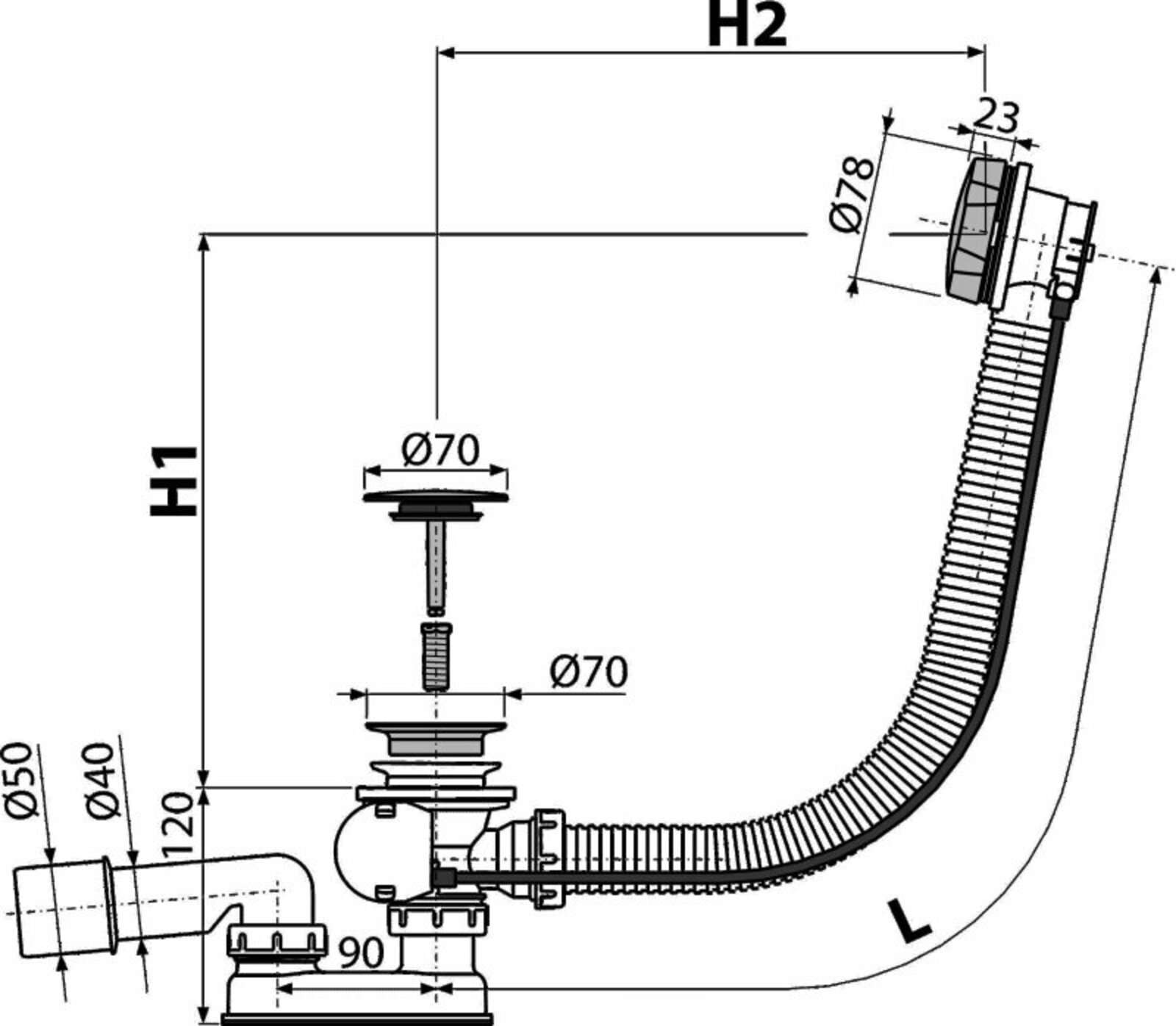 Sifon vanový Alcadrain kov, automat komplet A55KM