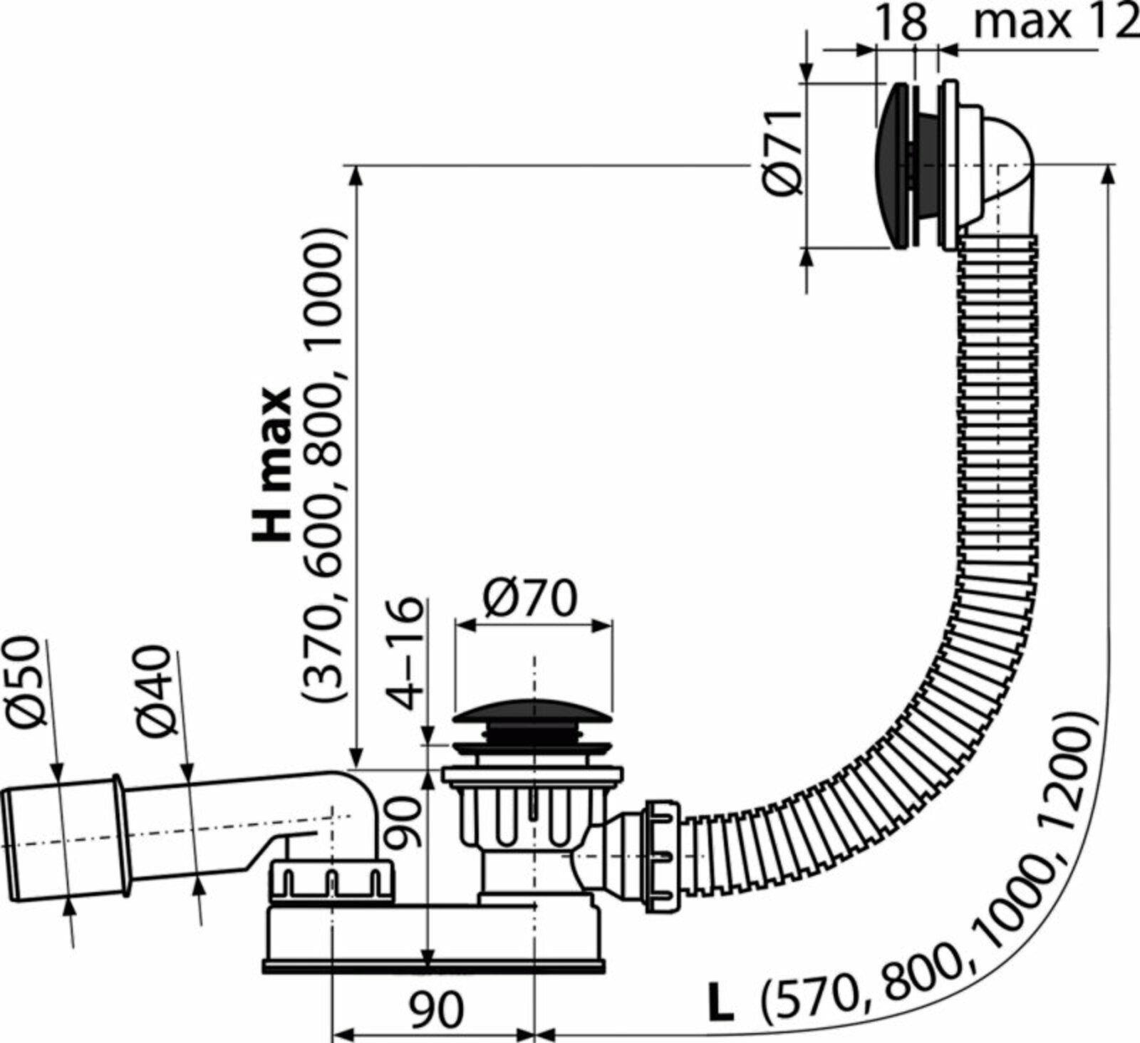 Sifon vanový Alcadrain černá-mat, CLICK/CLACK A507BLACK