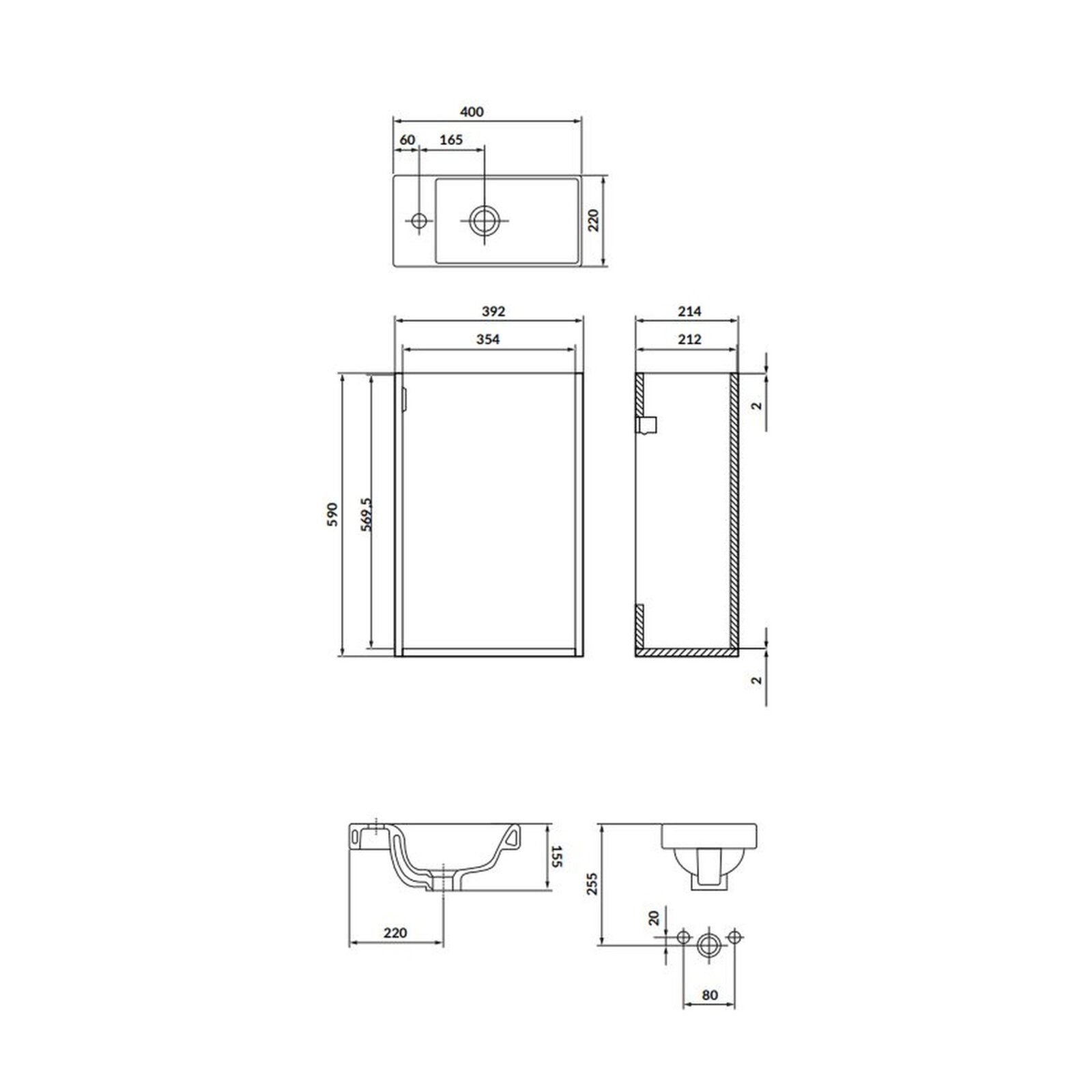UPOZORNĚNÍ: Umyvadlo a úchytky jsou standardní součástí dodávky.