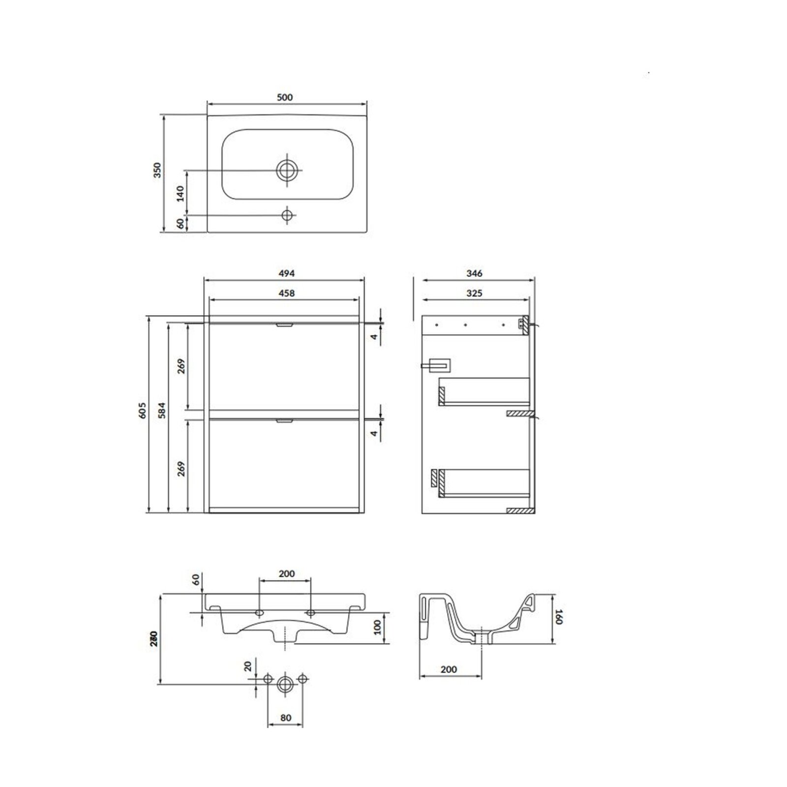 UPOZORNĚNÍ: Umyvadlo a úchytky jsou standardní součástí dodávky.