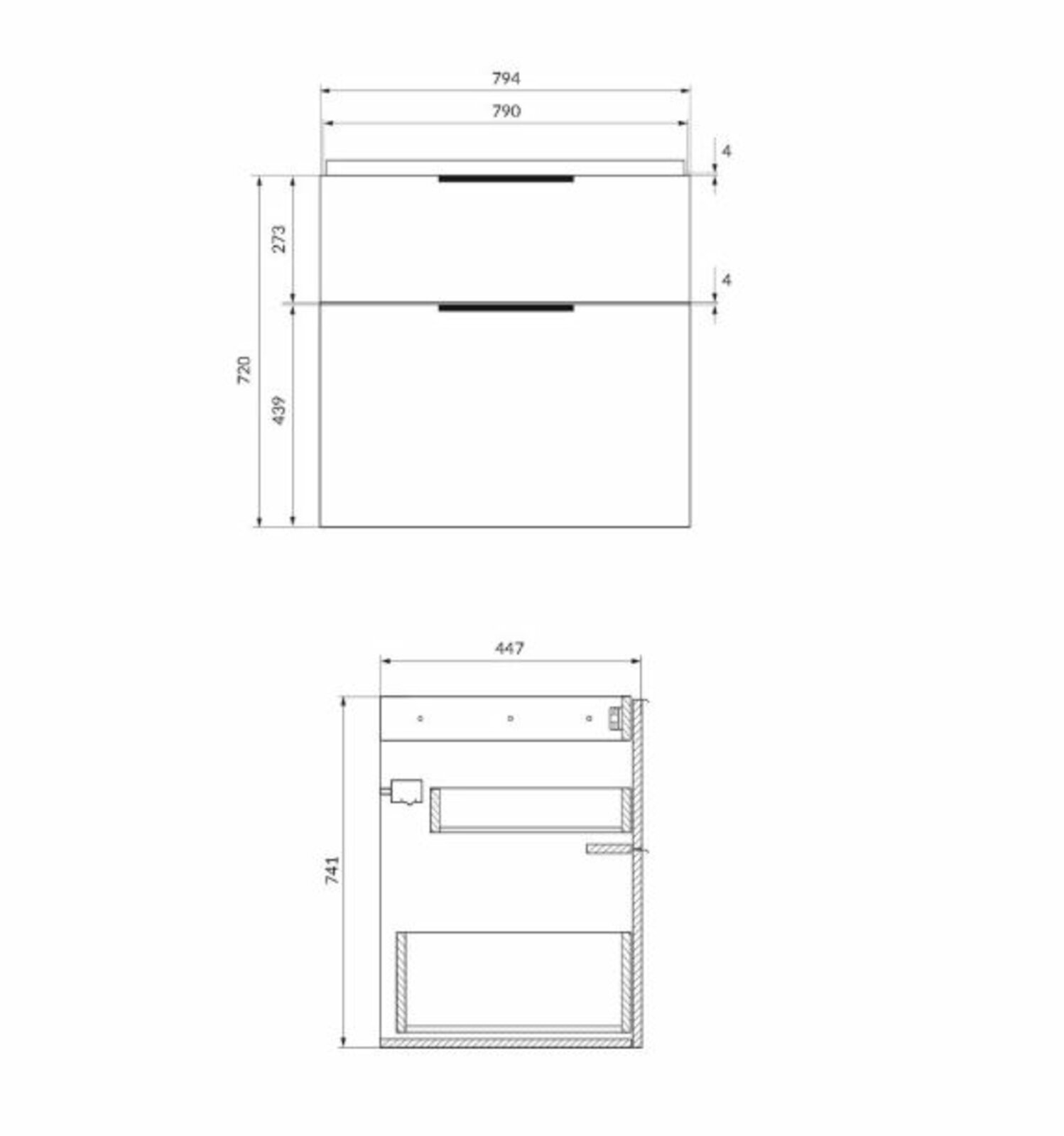 Tato skříňka pod umyvadlo z dřevotřísky má dvě prostorné zásuvky se systémem měkkého zavírání. Pohodlné rukojeti jsou k dispozici v černé nebo matně stříbrné barvě (prodávají se samostatně). Pro dekorativní účely jsou k dispozici volitelné nábytkové nohy ve stejných barvách.