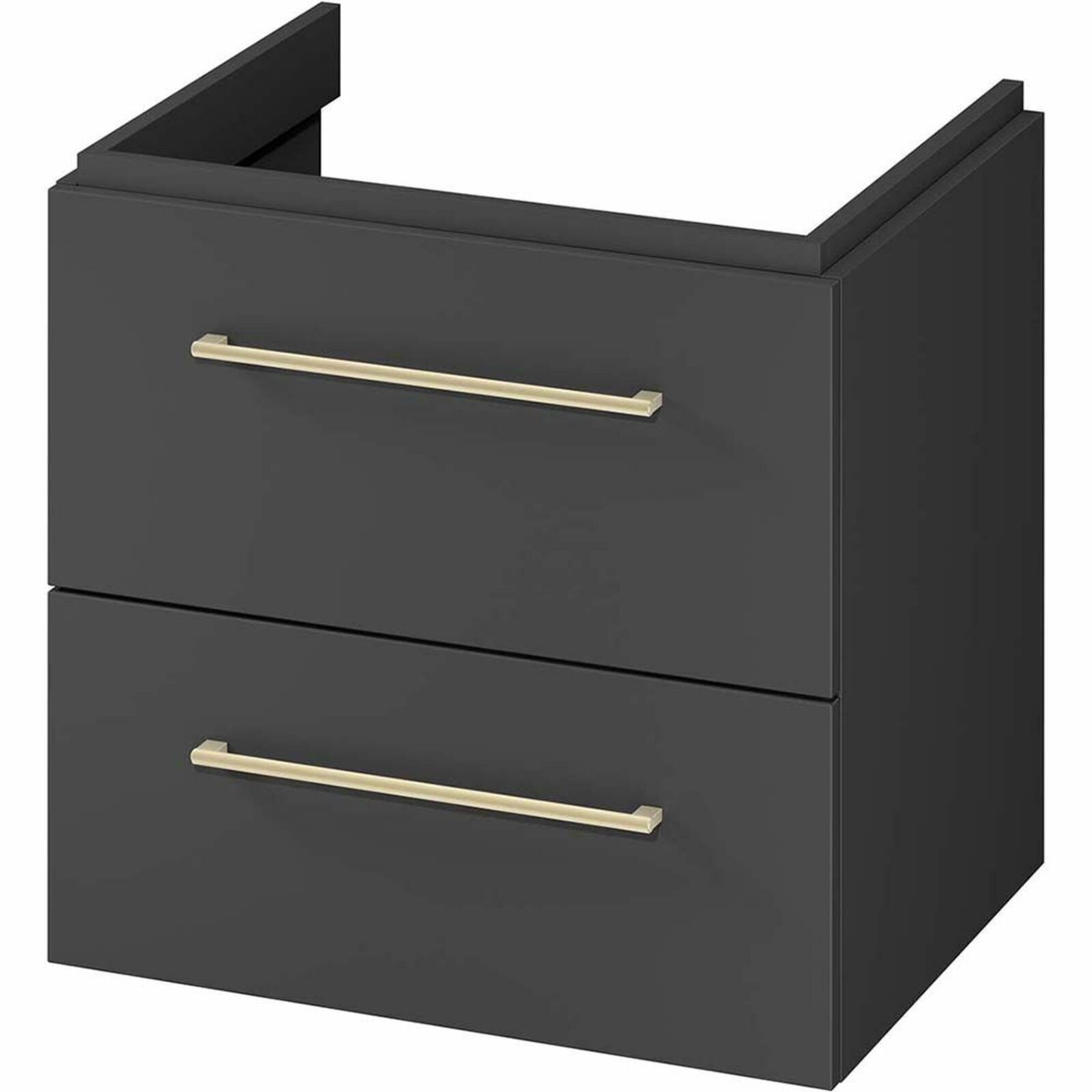 Skříňka pod umyvadlo z kolekce Larga v antracitové barvě, velikost 60. Přední část a korpus jsou vyrobeny z dřevotřísky, povrchově upraveny elegantním antracitovým lakem. Skříňka je vybavena dvěma prostornými zásuvkami, které nabízejí dostatek prostoru pro uložení kosmetiky, ručníků a koupelnových doplňků. Jejich interiéry jsou vyvedeny v elegantní šedé barvě, která ladí s antracitovou přední stranou a vytváří tak esteticky soudržný celek. Systém soft-close zajišťuje jemné a tiché dovírání zásuvek, což zvyšuje pohodlí. Výrazným prvkem skříně je frézované madlo, které podtrhuje její minimalistický styl. Tato rukojeť je k dispozici ve třech barvách – stříbrné, zlaté a černé – což vám umožní personalizovat jednotku a sladit ji s ostatním vybavením koupelny. Rukojeť je nutné zakoupit samostatně. Deska, ze které je skříň vyrobena, má certifikaci FSC MIX CREDIT SGSCH-COC-007574.