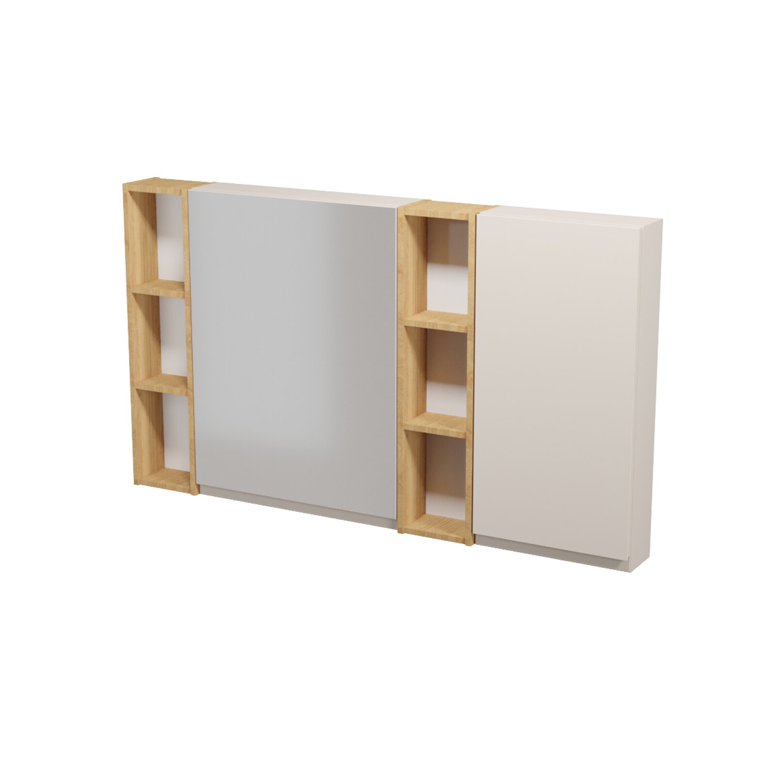 Nábytkový set Cersanit Moduo 140, skříňka 60 zrcadlová závěsná kašmír, skříňka 20 horní závěsná otevřená dub hikora 2x, skříňka 40 závěsná horní kašmír