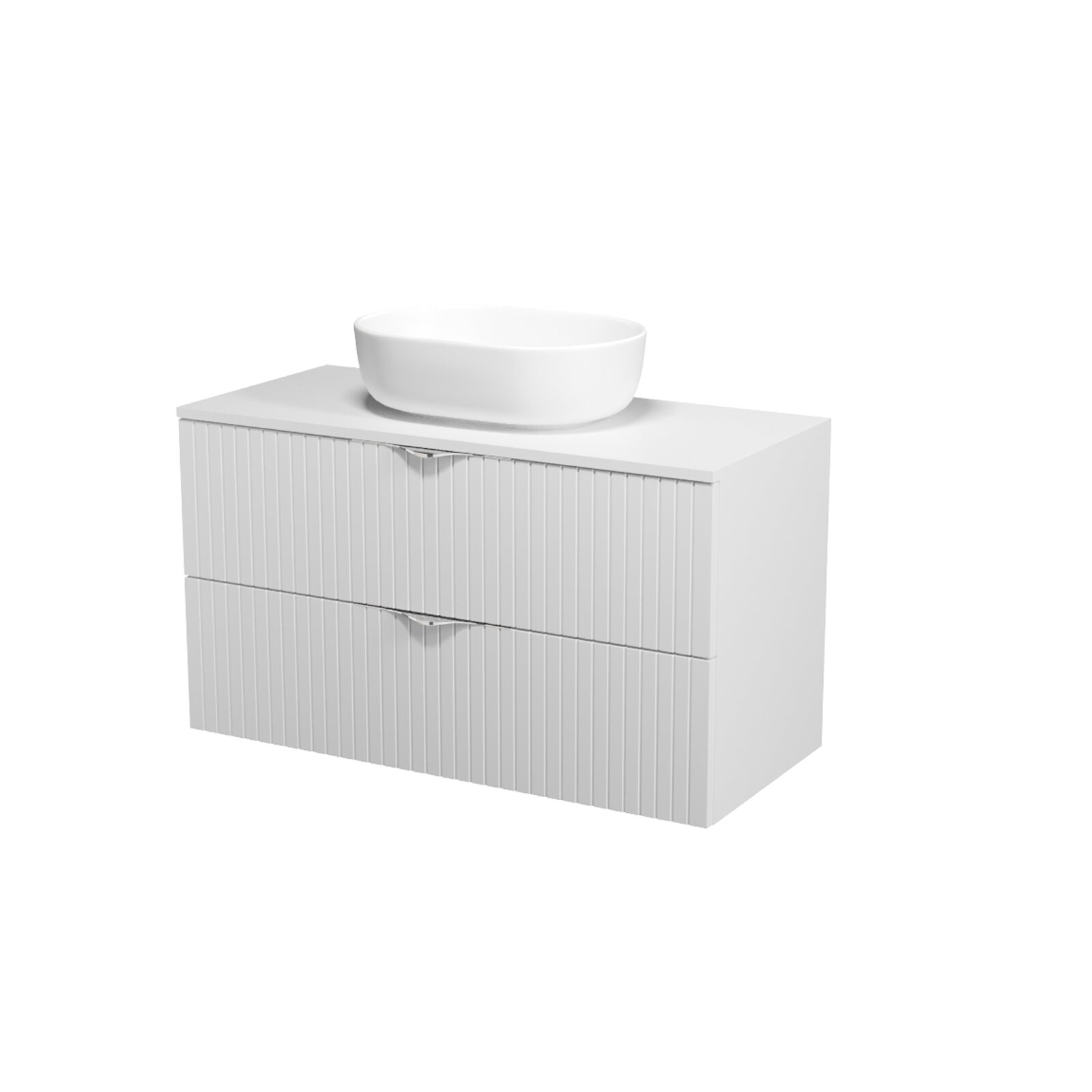 Nábytkový set Cersanit Tirso 100, skříňka 100 pod desku bílá matná, deska 100 horní bílá matná, umyvadlo Moduo 50 na desku oválné bílé, výpust umyvadlová bílá