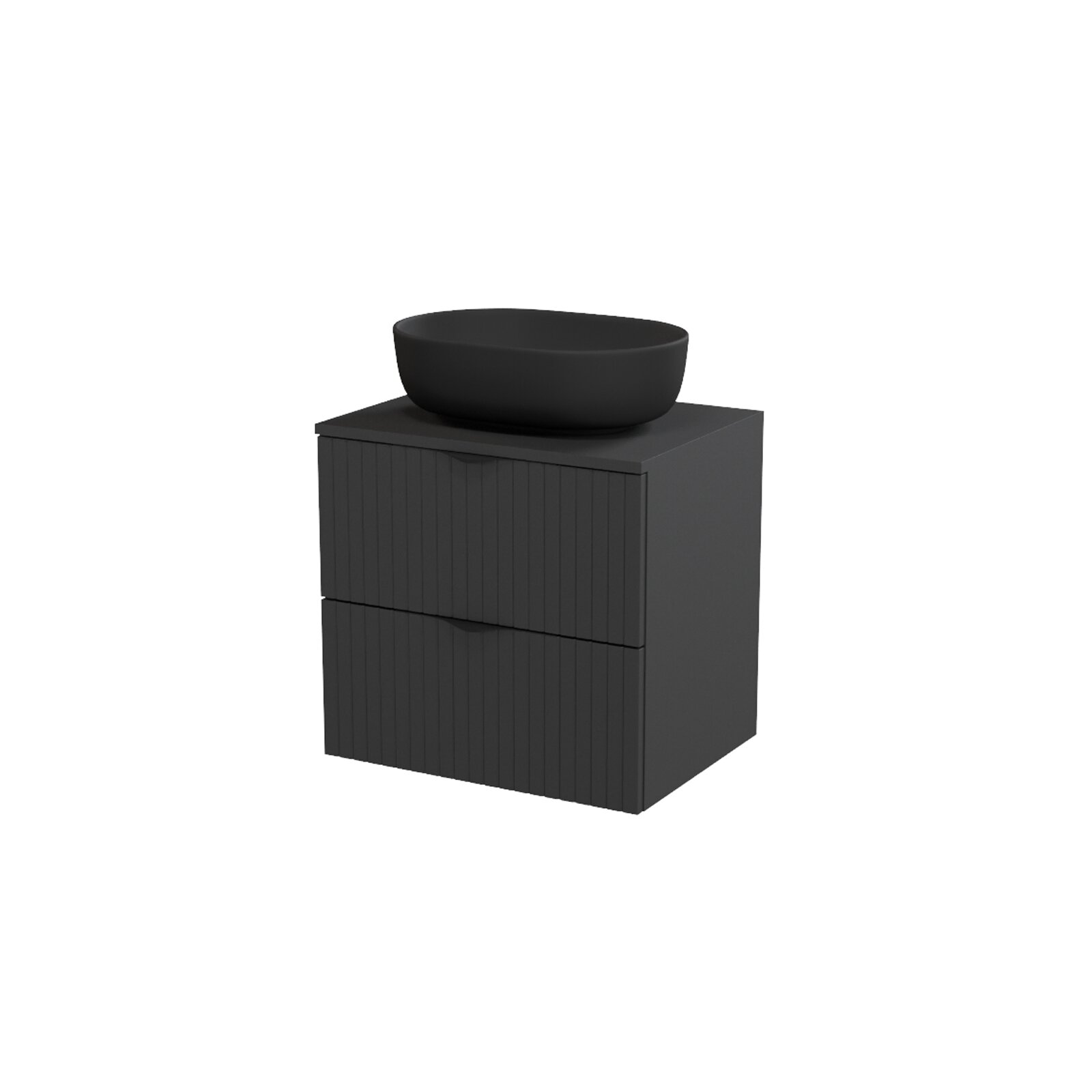 Nábytkový set Cersanit Tirso 60, skříňka 60 pod desku černá, deska 60 horní černá, umyvadlo Moduo 50 na desku oválné antracitové, výpust umyvadlová antracitová