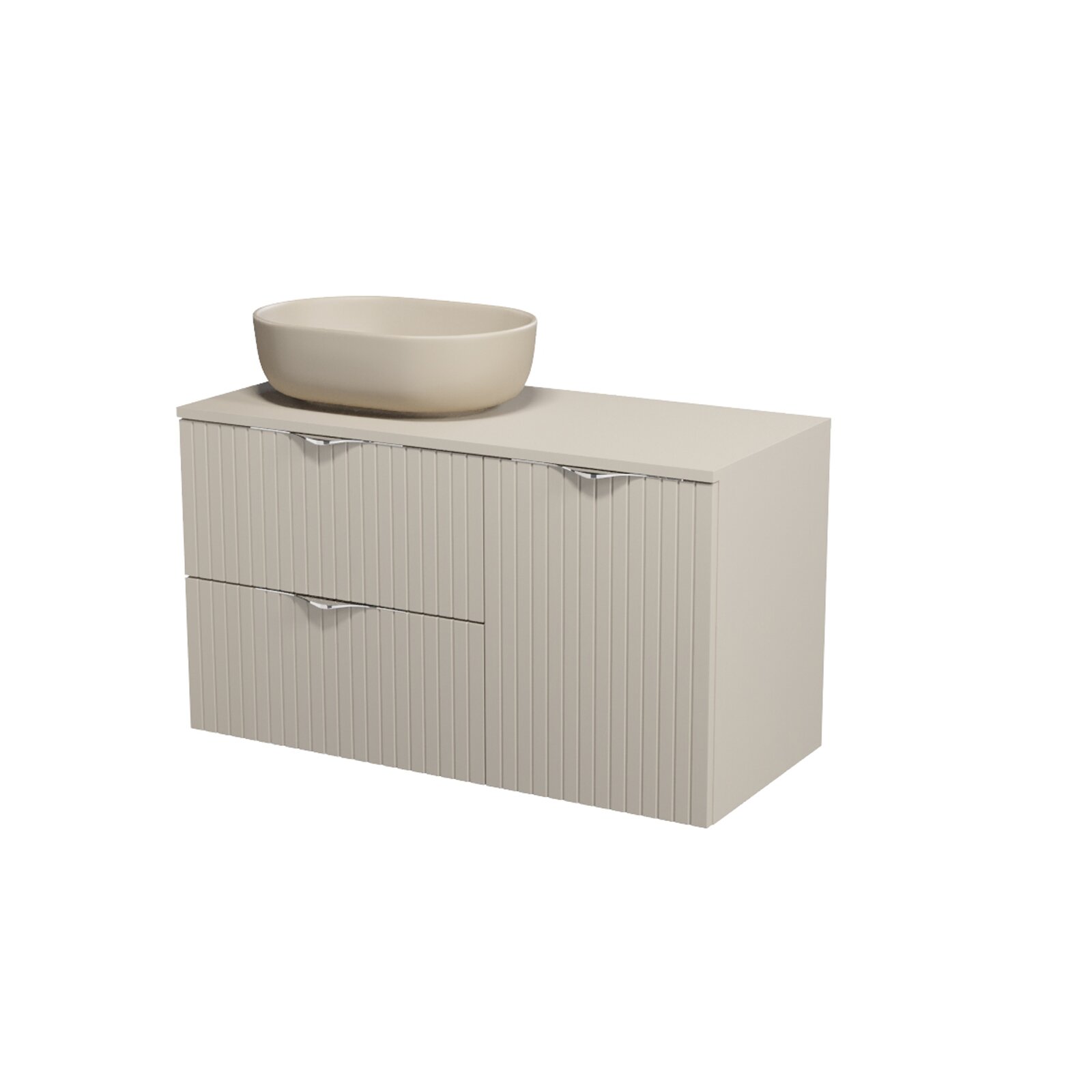 Nábytkový set Cersanit Tirso 100, skříňka 60 pod desku kašmír, skříňka 40 pod desku s dvířky kašmír, deska 100 horní kašmír, umyvadlo Moduo 50 na desku oválné béžové, výpust umyvadlová béžová