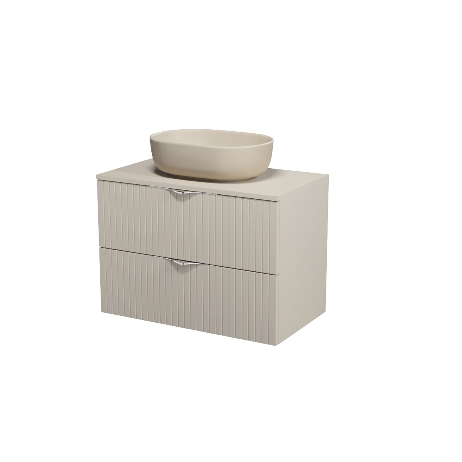 Nábytkový set Cersanit Tirso 80, skříňka 80 pod desku kašmír, deska 80 horní kašmír, umyvadlo Moduo 50 na desku oválné béžové, výpust umyvadlová béžová