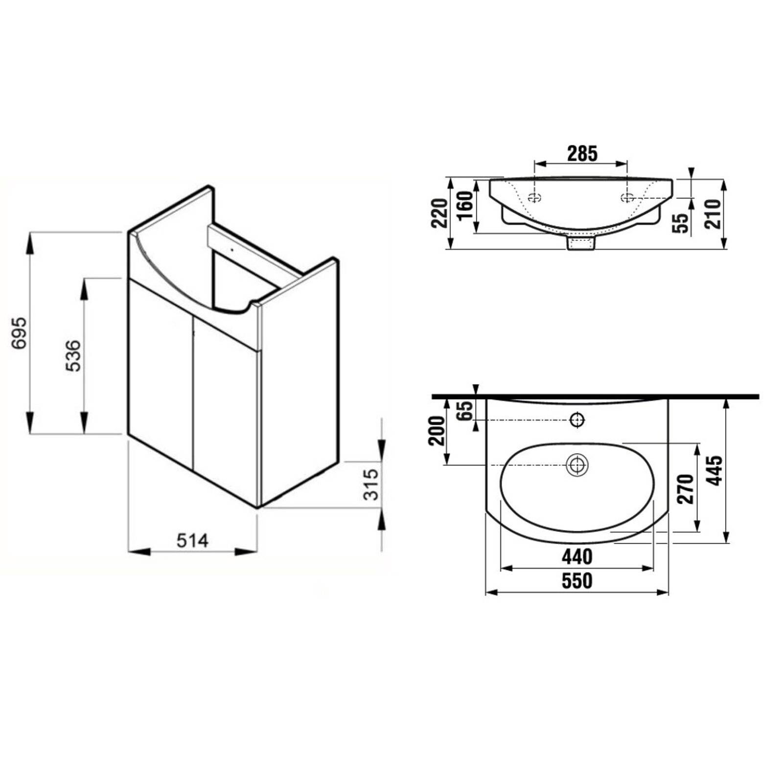 Skříňka EBS Diana New 55 s umyvadlem, bílá, DIANAN55B