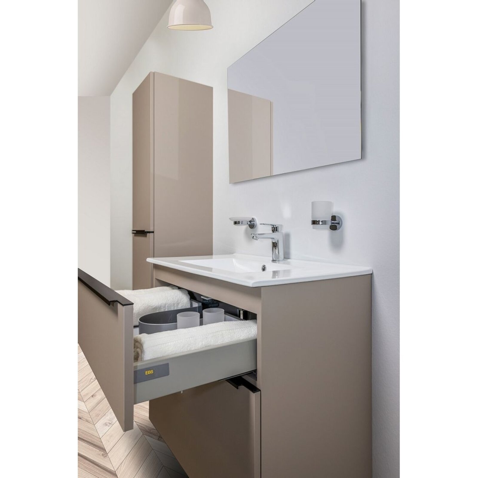 Koupelnový nábytek ze série Dream se vyznačuje minimalistickým, stylovým vzhledem s optimální vhodností pro každodenní použití. Tlumené dekory skříněk působí dojmem luxusu a elegance a designové matné černé úchytky zajišťují rafinovaný vzhled. Nábytek boduje kvalitními pojezdy Strong a pomalým dovíráním šuplíků. Skříňky disponují laserově opracovanými hranami a jsou určené k zavěšení. Zásuvky vybaveny designovými černými úchytkami. Dodáváno ve smontovaném stavu, skříňka se 2 dvířky a 4 poličkami uvnitř.