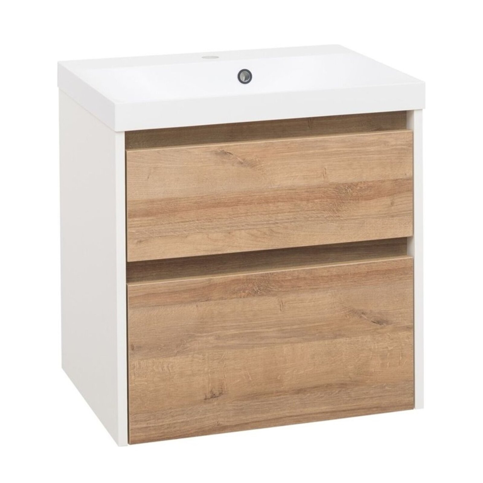 Skříňka EBS Duomo 61 s umyvadlem, bílá lesk/dub Riviera, DUOMO61K