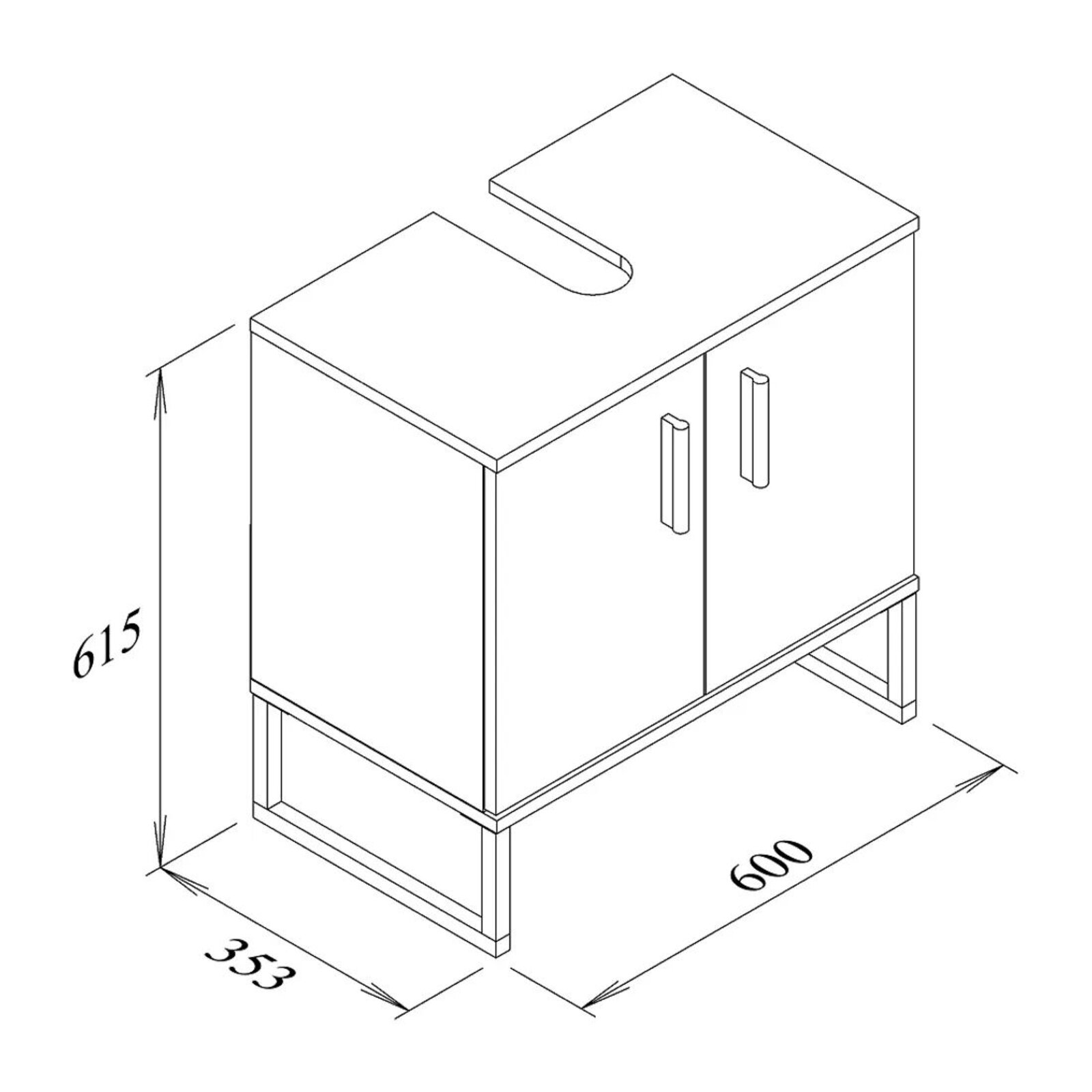 skříňka s výřezem pro sifon, 2 dvířka, dodáváno demontované, nožičky jsou součástí balení