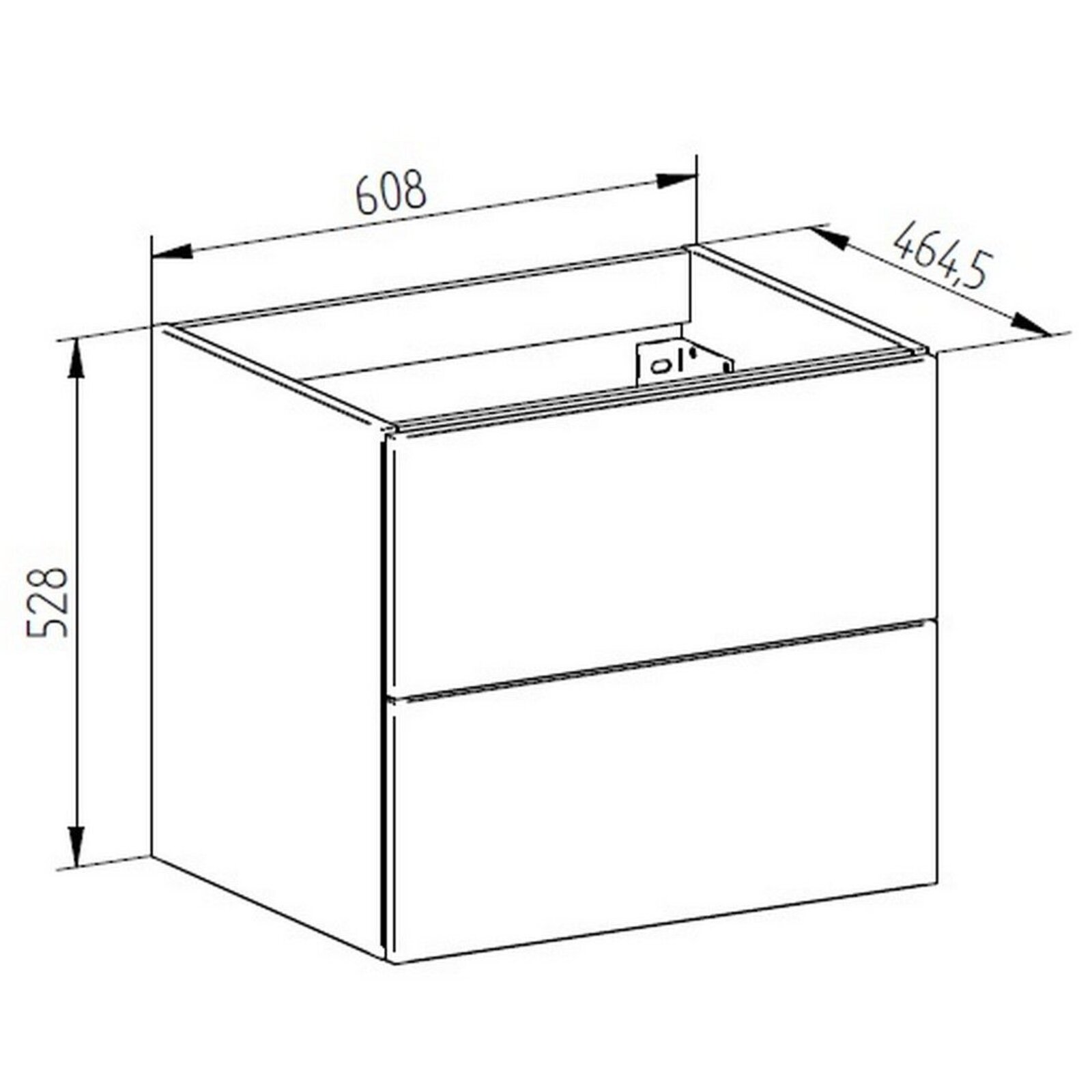 Kombinovatelné se skříňkou nebo umyvadlem stejné série, zásuvky jsou řešeny push-open otevíráním bez úchytek, zásuvky jsou opatřeny pomalým dovíráním. V horní zásuvce skříňky je vykrojení pro umyvadlový sifon. Dodáváno ve smontovaném stavu. Vnitřní výška horního šuplíku je 14,5 cm a spodního šuplíku 20 cm. Skříňky mají nadstandardní pojezdy Blum, které je možné seřídit ve všech směrech.