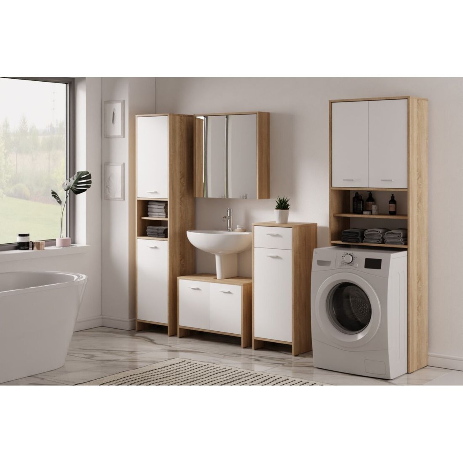 Materiál: lamino - tloušťka 16 mm, s melaminovou hranou a plastovou úchytkou. 2 dvířka, tlumení zavření nalepovací silikonovou čočkou. Jemné a decentní skříňky ze série Sofie nabízí k výběru 2 odstíny: bílá a dub sonoma. Skříňky jsou dodávané nesmontované (demont), pro snazší transport. Unikátní skříňka s výřezem pro umyvadlový sifon Vám nabízí jedinečnou možnost kombinace s umyvadly různých tvarů a rozměrů a dodá Vaší koupelně elegantní a vzdušný vzhled.