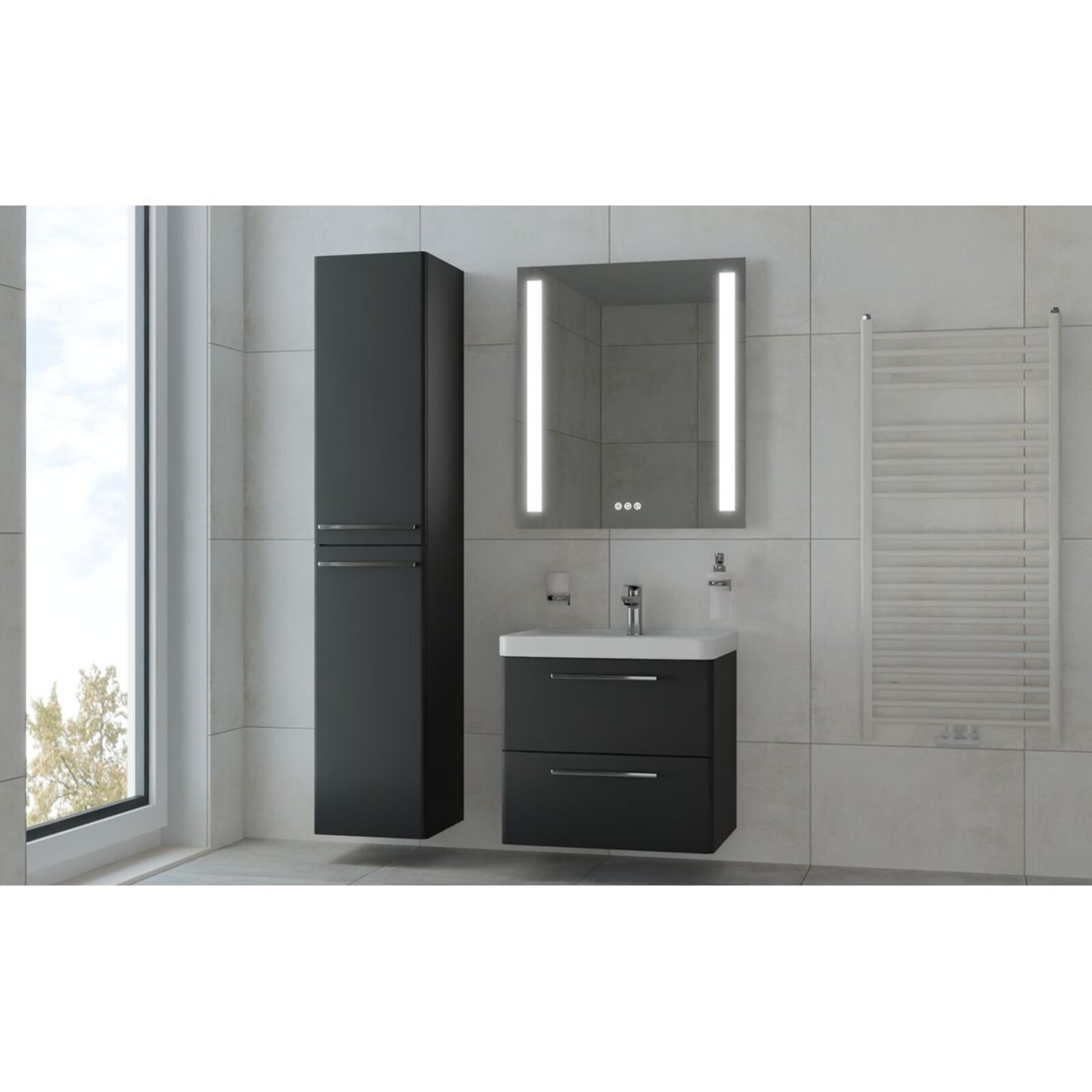 Skříňka EBS Urban 61 s umyvadlem, černá mat/madlo chrom, URBAN60CMCR