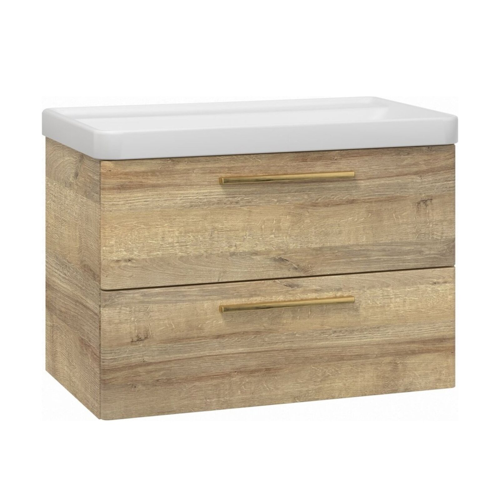 Skříňka EBS Urban 81 s umyvadlem, dub Riviera/madlo zlatá k artáčovaná, URBAN80DRZ
