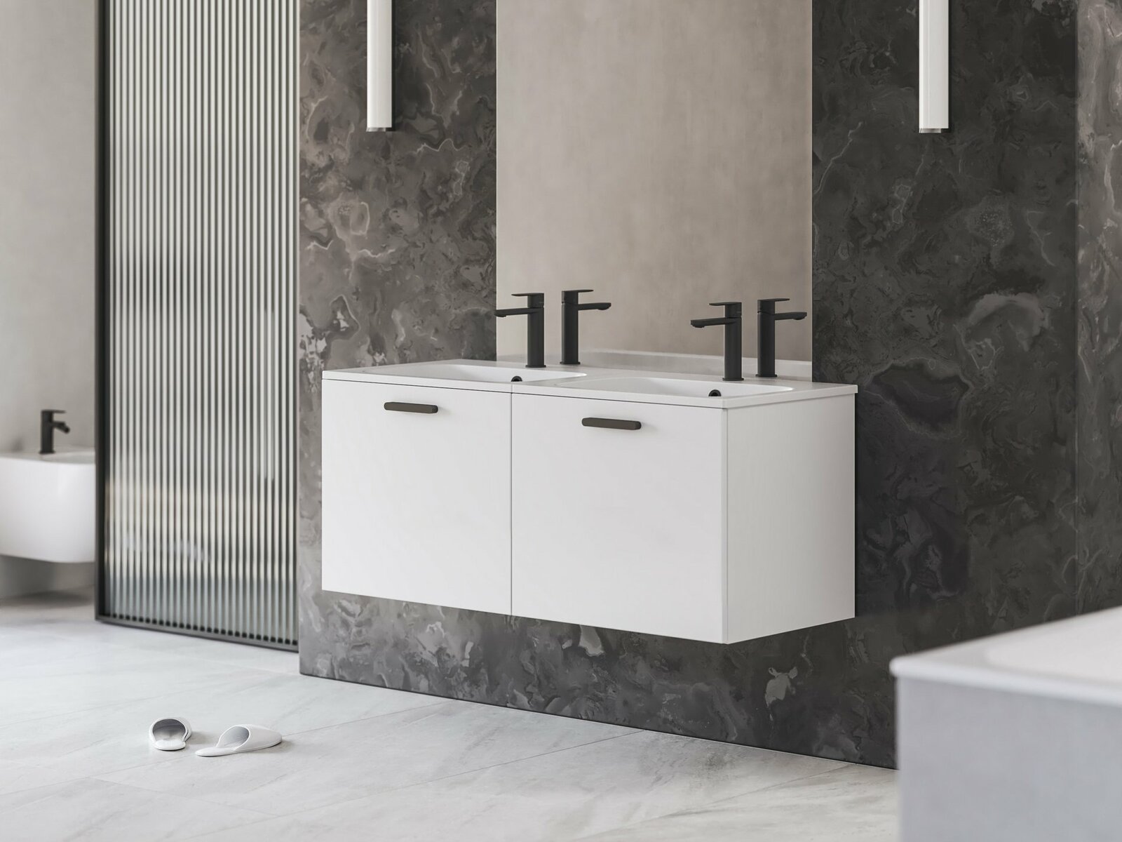 Skříňka pod dvojumyvadlo SD Chrome II v bílém provedení. Madla v černém provedení.- rozměr (šxhxv): 120 x 49 x 47 cm