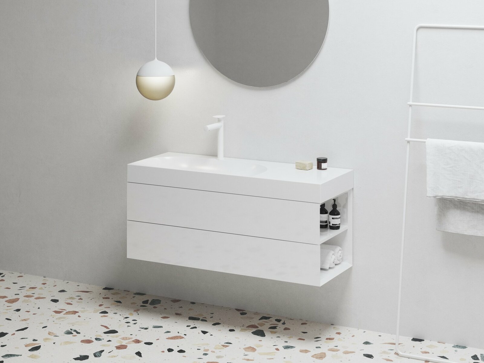 Skříňka pod umyvadlo SD Lite v bílém lesklém provedení. Pravá varianta.- rozměr (šxhxv): 120 x 45 x 43 cm