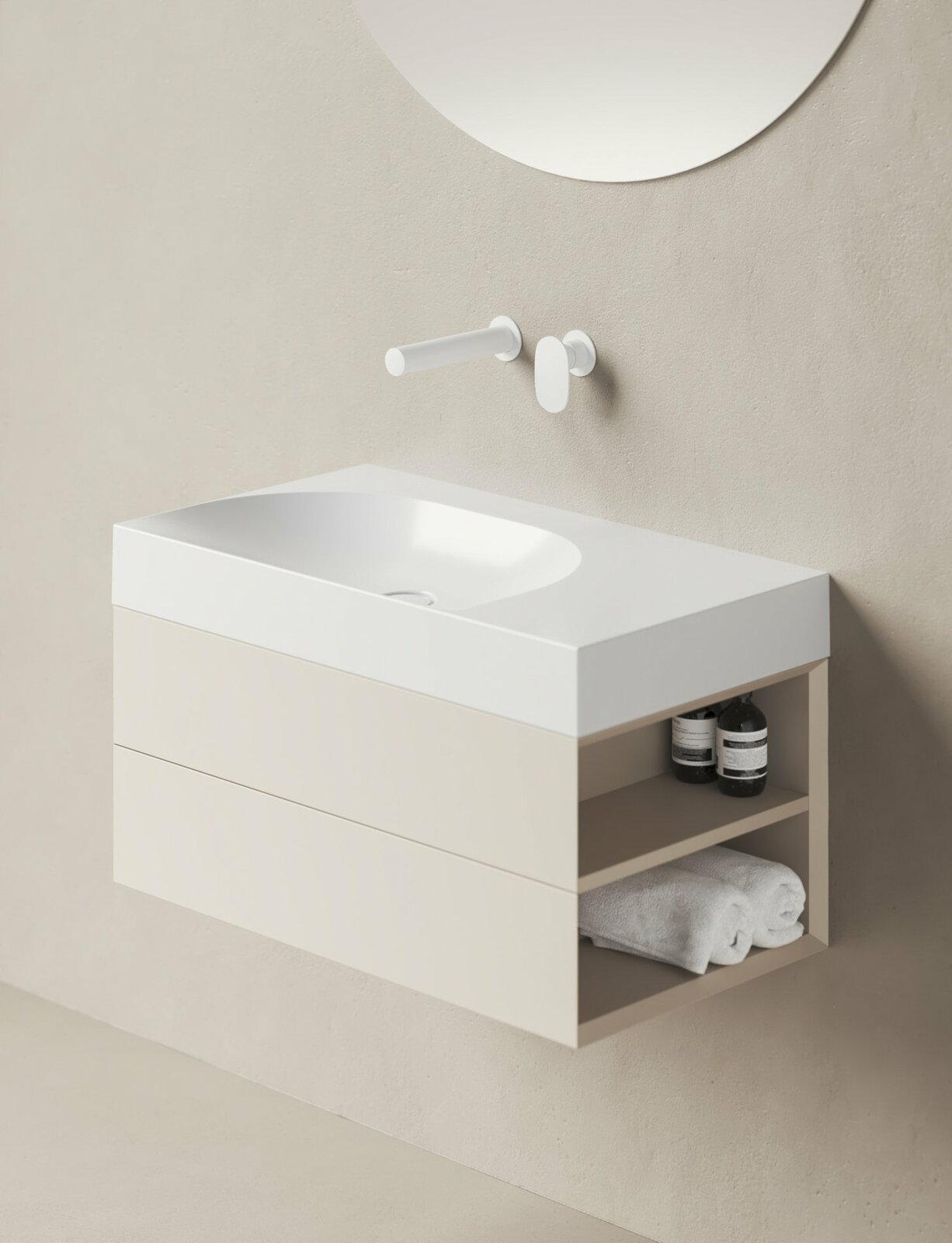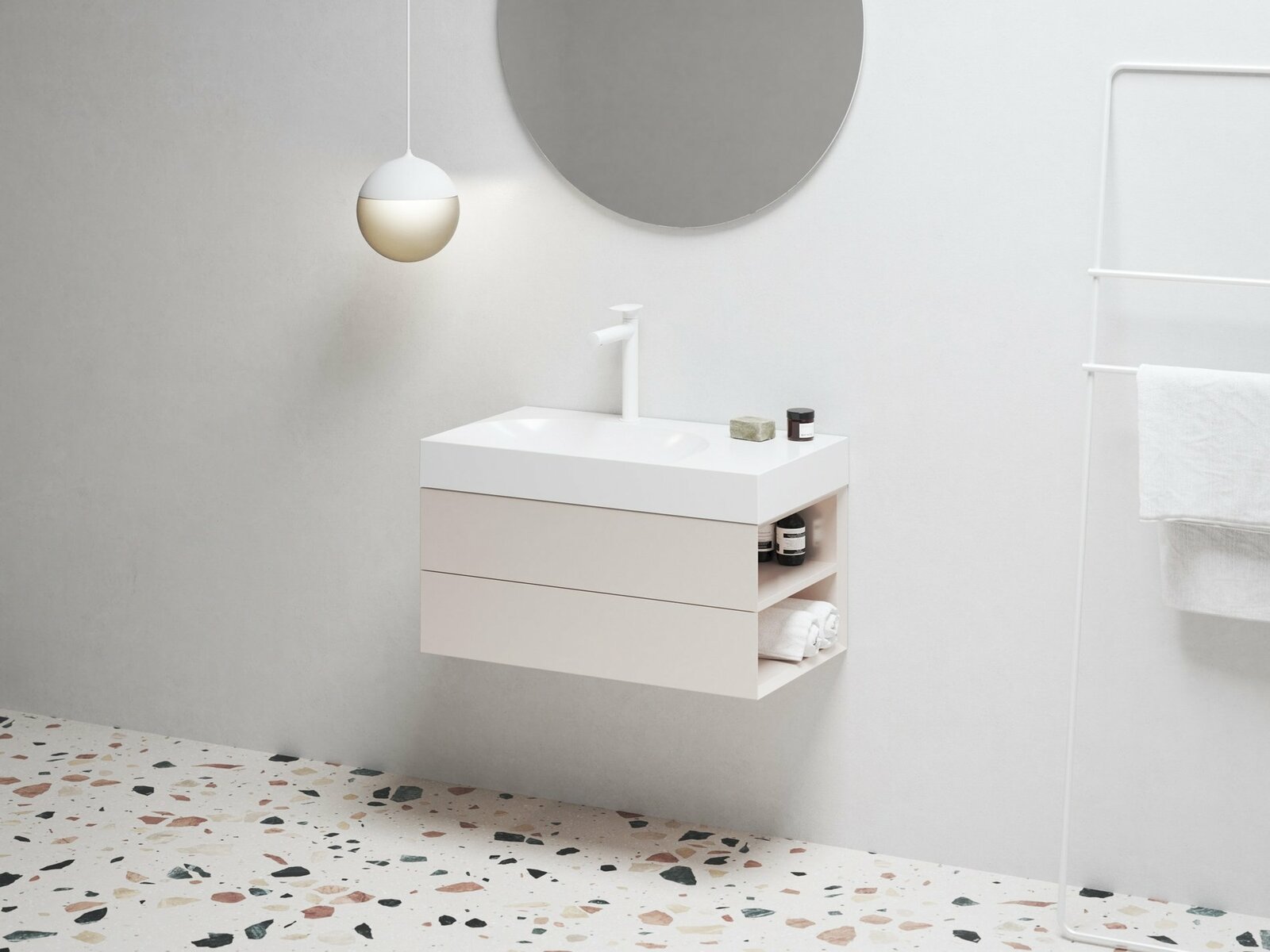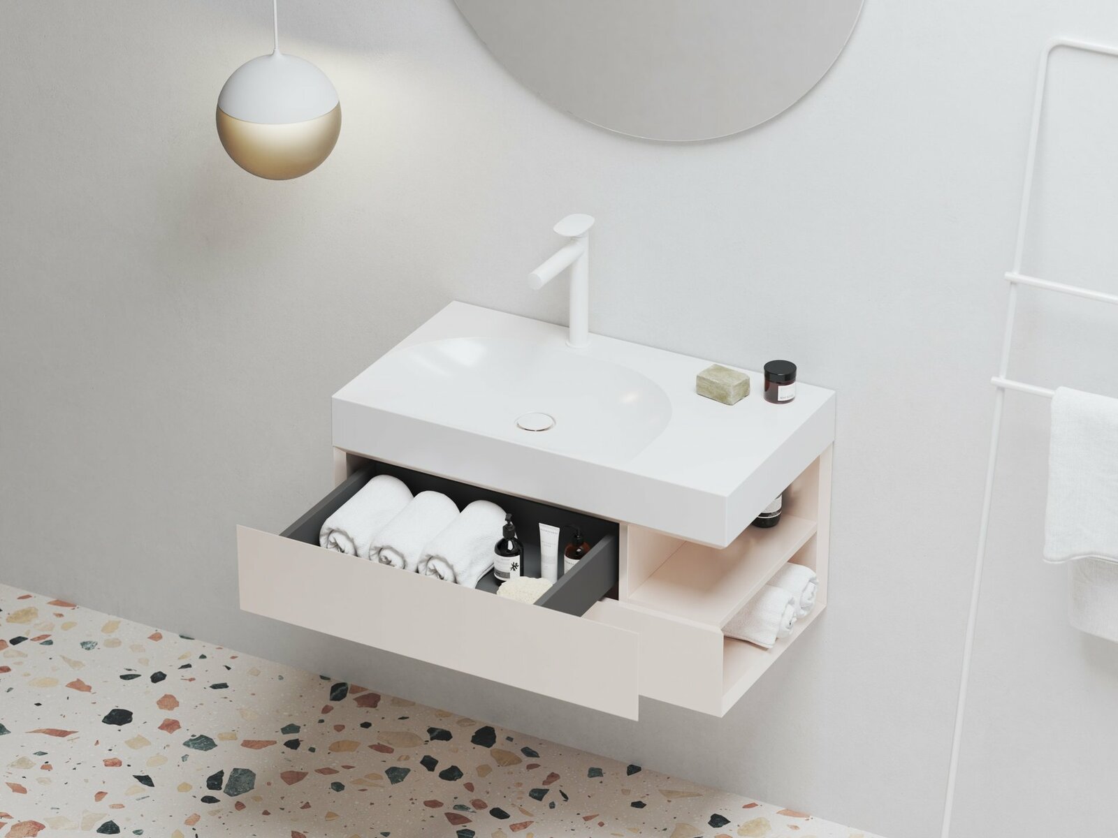 Skříňka pod umyvadlo SD Lite v provedení Alabaster Pink. Pravá varianta.- rozměr (šxhxv): 80 x 45 x 43 cm