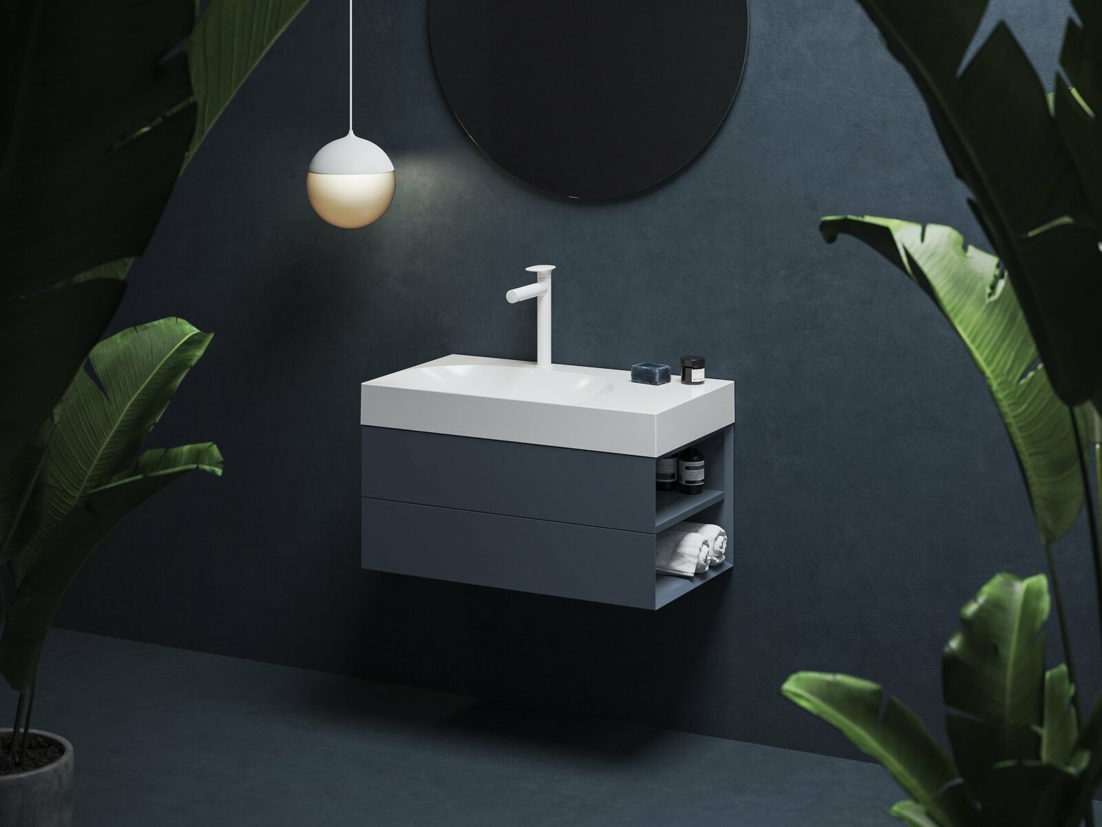 Skříňka pod umyvadlo SD Lite v provedení Deepsea Blue. Pravá varianta.- rozměr (šxhxv): 80 x 45 x 43 cm