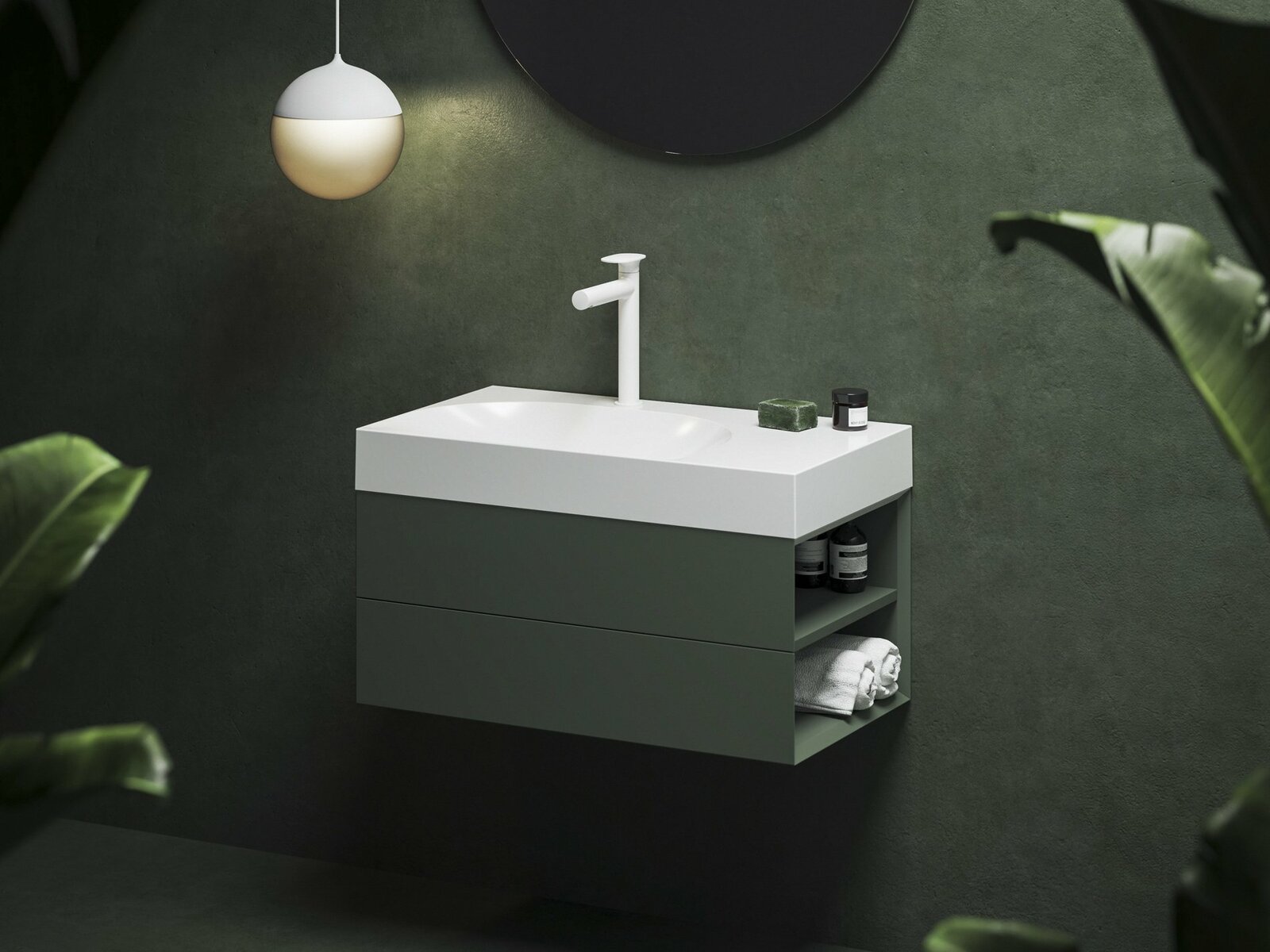 Skříňka pod umyvadlo SD Lite v provedení Grey Green. Pravá varianta.- rozměr (šxhxv): 80 x 45 x 43 cm
