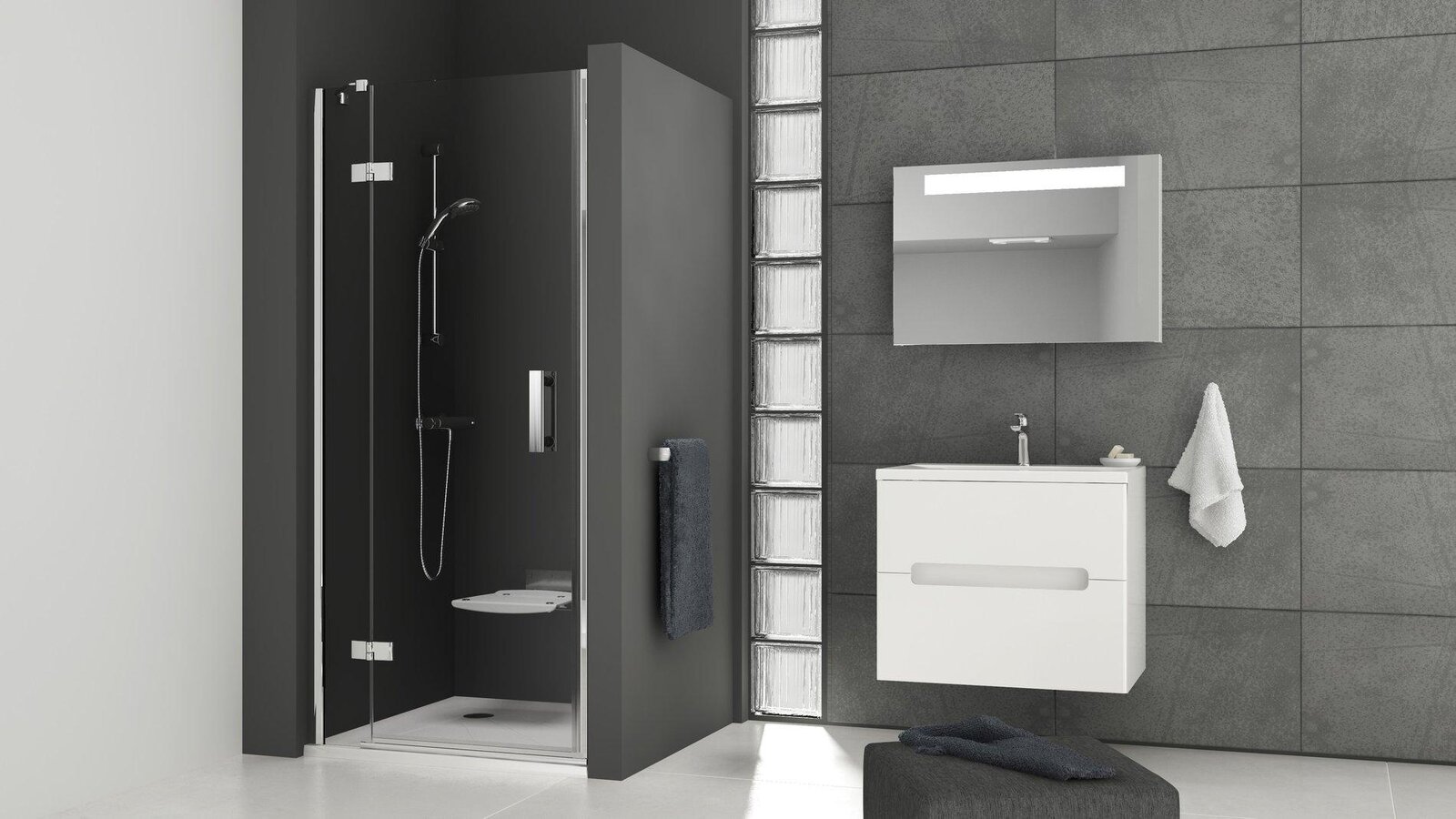 Ideální a elegantní řešení pro vytvoření sprchového prostoru v nice o šířce 90 - 120 cm. Přizpůsobí se i případným stavebním nerovnostem.
