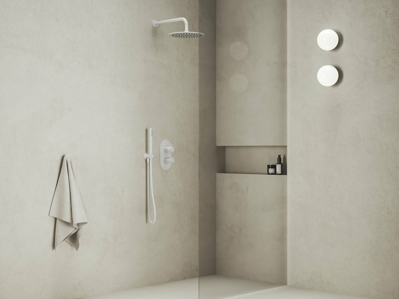 Hlavová sprcha kulatá. V bílém matném provedení.- rozměr: o 250 mm