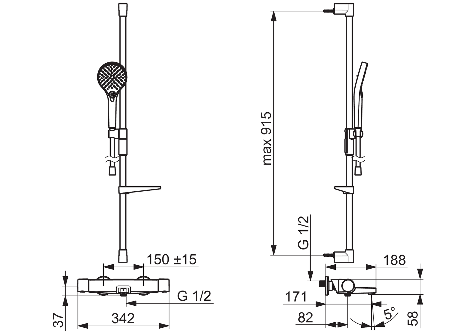 - Ruční sprcha; MagShelf. Removable shelf with magnetic attachment; Sprchová tyč s nastavitelnou roztečí úchytů; Sprchová hadice (1750 mm); Sprchová tyč; Technologie proti usazeninám (snadno se čistí); Mýdelník; Sprchová hadice s ochranou proti překroucení; Variabilní montážní body