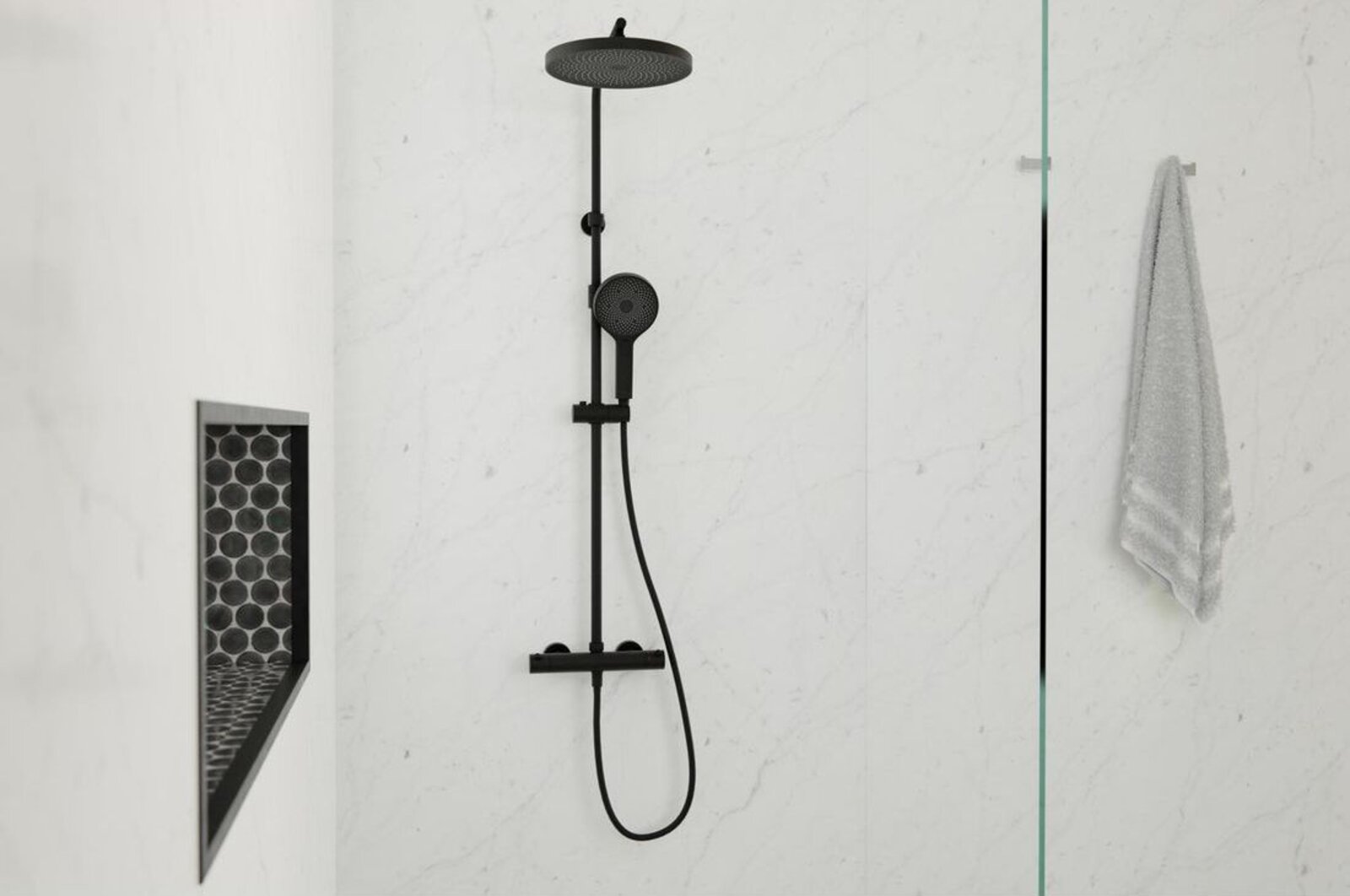Sprchový set kielle Oudee je ukázkou důmyslné kombinace výkonu a estetické stránky. Oválné linie prostor příjemně zjemní, černá barva povrchů mu pak dodá nadčasovou eleganci. Sprchový set vyniká spolehlivostí a vysokou flexibilitou použití. Skládá se z hlavové a ruční sprchy se sprchovou hadicí, sprchové tyče s pojízdným držákem a nástěnného termostatu.