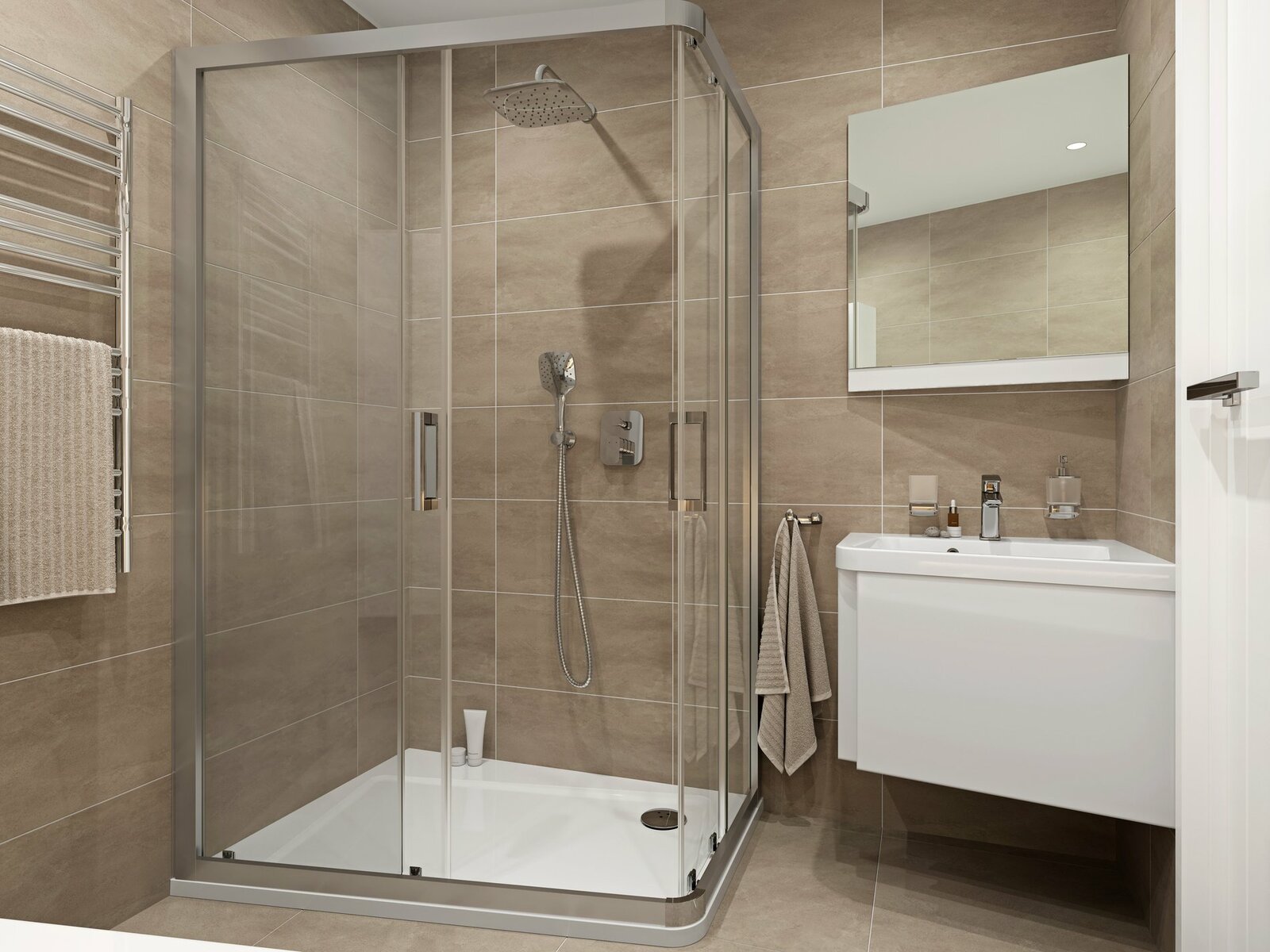 Voda do sprchové hadice a ruční sprchy proudí přes držák ruční sprchy. Ruční sprcha je vybavena třemi režimy průtoku vody. Režim proudu Rain připomíná letní déšť a působí na zklidnění pokožky. Pomocí režimu Jet dosáhnete silného proudu ze středu růžice, který intenzivně prokrví pokožku. Vhodný je i pro čištění méně dostupných míst v koupelně. Třetí režim nabízí kombinaci obou těchto režimů. Funkce EasyClean umožňuje jednoduché odstranění vodního kamene z trysek hlavové i ruční sprchy.