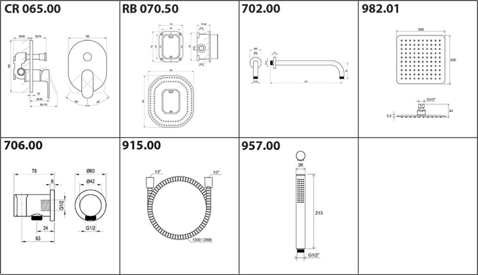 Sedmidílný sprchový set Chrome s podomítkovou baterií. V provedení lesklý chrom.- kartuš baterie (průměr, materiál): 35 mm, keramická