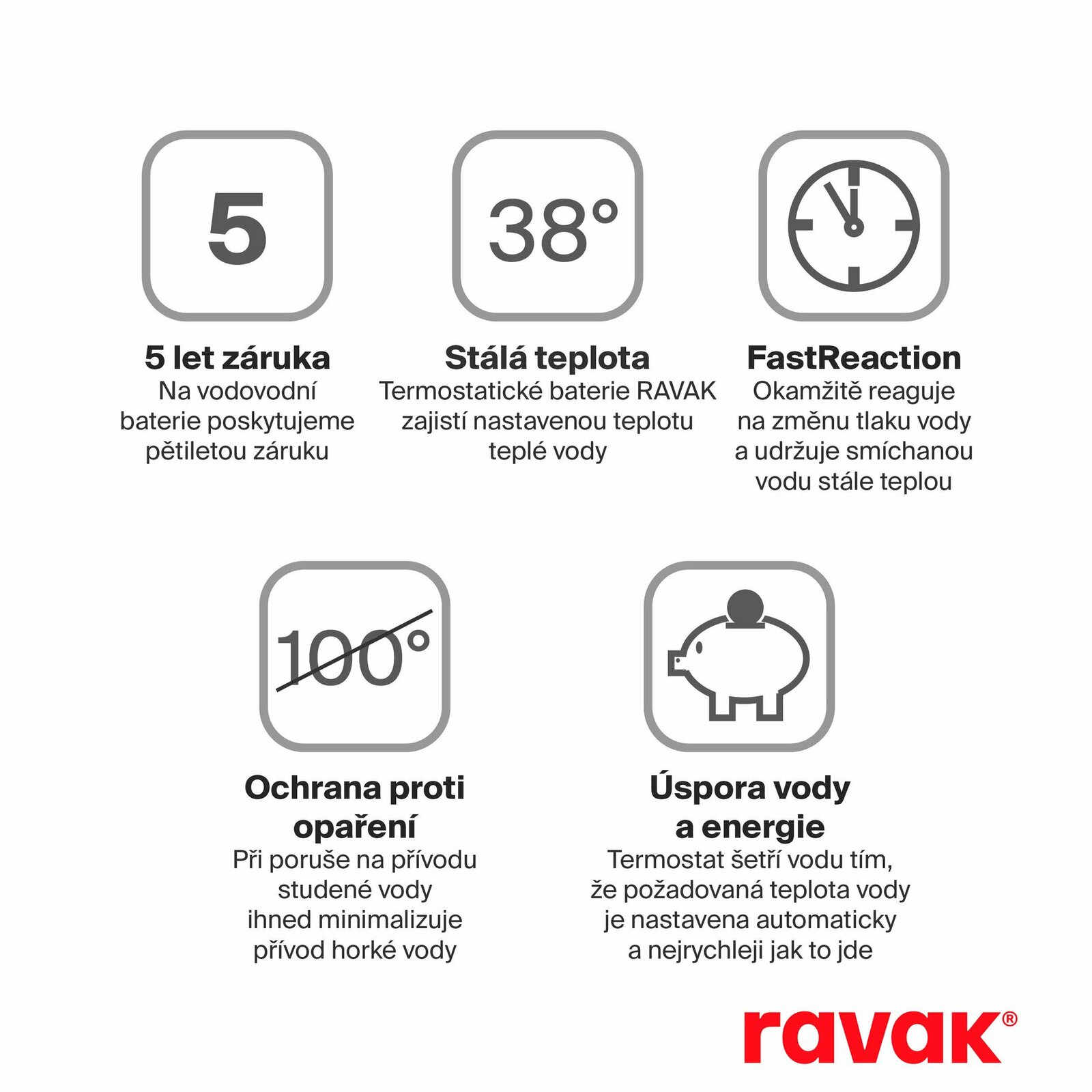 Pro ucelené řešení a designový soulad koupelny doporučujeme kombinovat s ostatními bateriemi řady Espirit a dalším příslušenstvím Ravak. Na vnější čištění doporučujeme používat přípravek přípravek Ravak Cleaner Chrome.