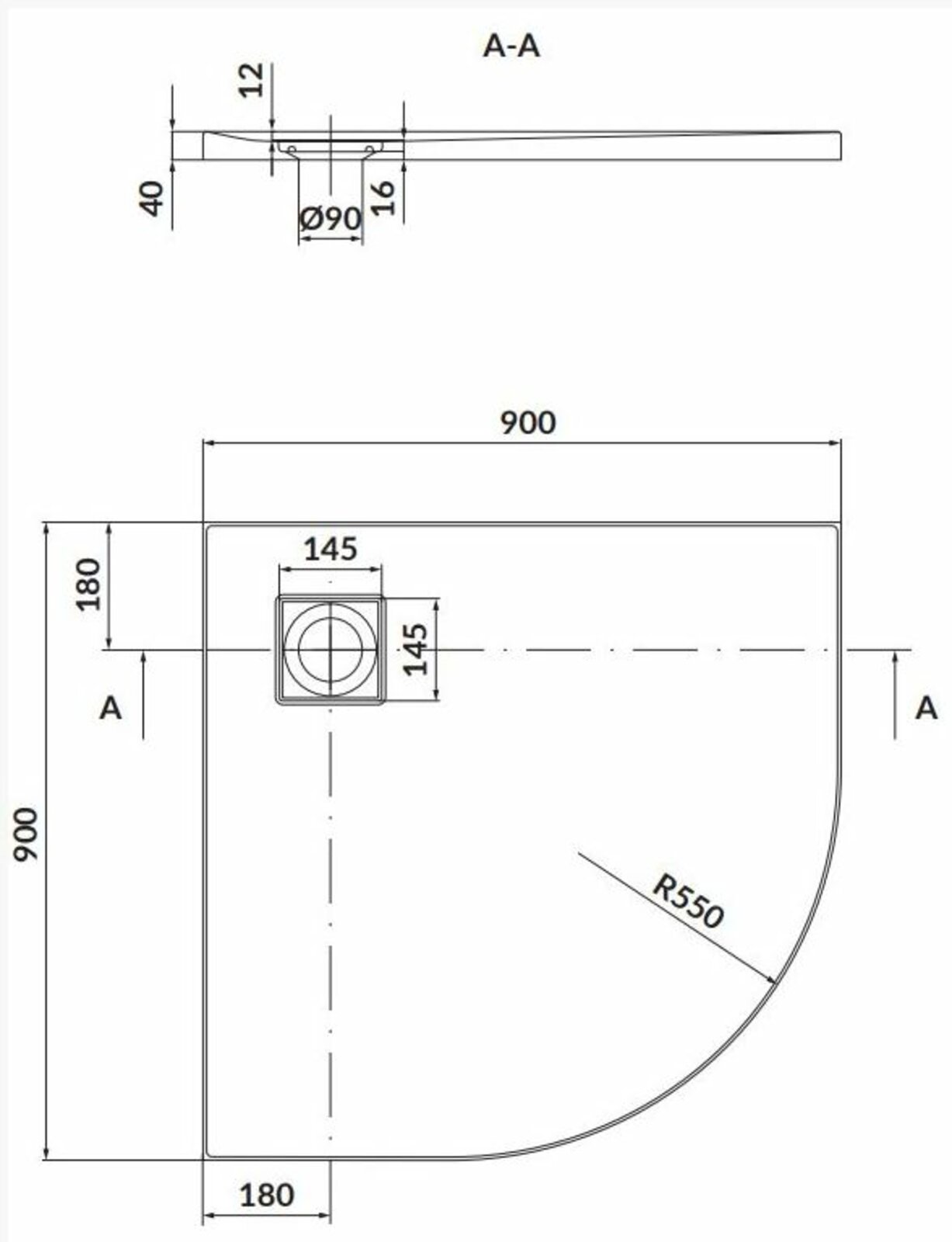 Sprchová vanička Cersanit Tako Slim 90x90x4 černá matná čtvrtkruhová R55 sifon set B457, S932‑164