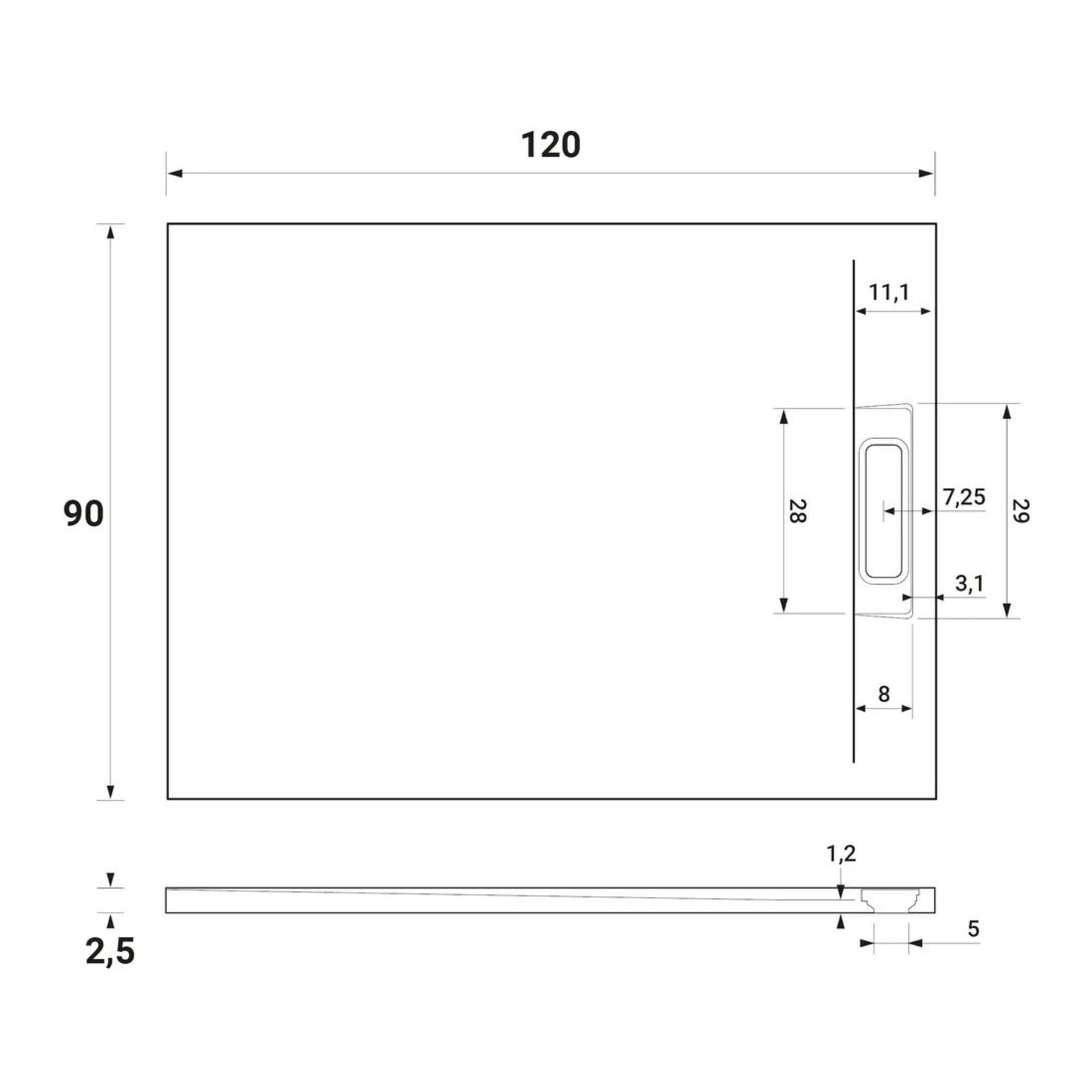 Inovativní, elegantní a decentní design. Sifon není součástí balení a je nutné ho dokoupit, krytka sifonu s povrchem imitujícím břidlici je součástí balení. Trapézový tvar krytky zabraňuje její posouvání. Vaničky jsou řezatelné. Lze instalovat na podlahu i do úrovně s podlahou. Přírodní břidlicová textura s dobrými protiskluzovými vlastnostmi, produkt certifikovaný podle normy UNE-EN 14527:2016+A1:2019 jako třída 1. Materiál je směs polyesterové pryskyřice a minerálních plniv, s povrchovou úpravou z vysoce kvalitního gelového nátěru. Jednoduchá údržba.