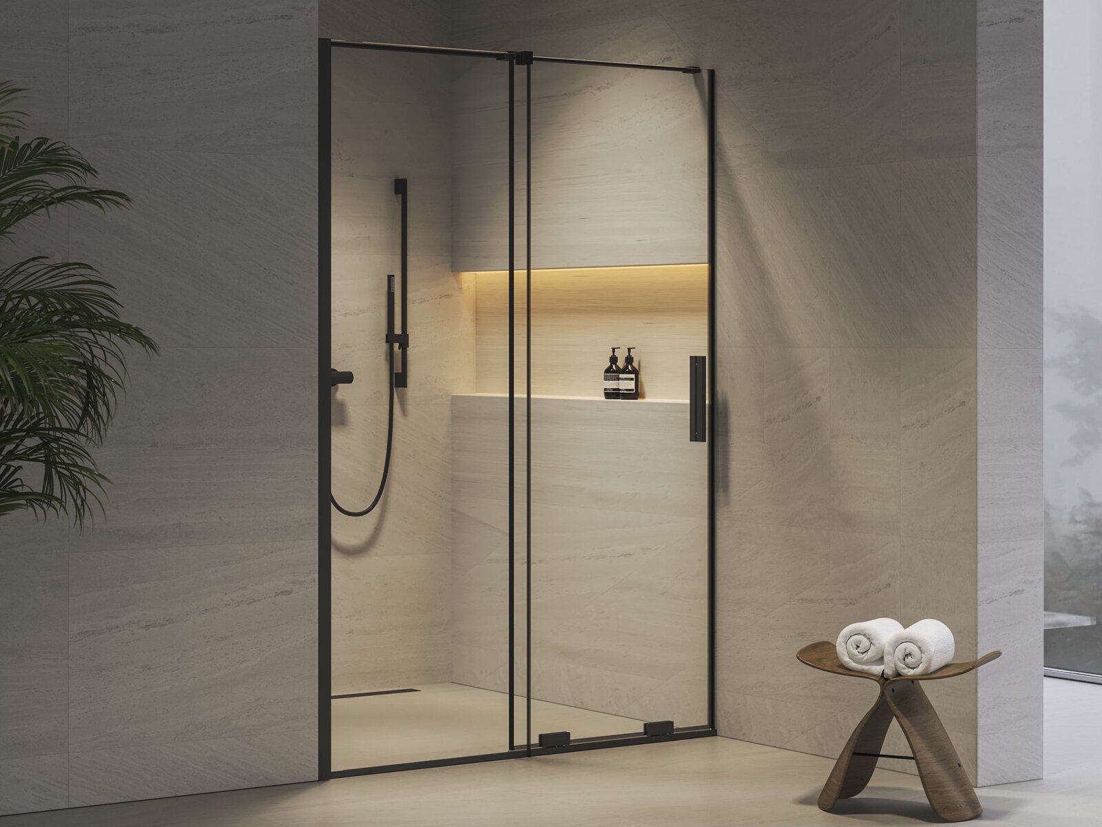 Sprchové dveře Ravak Roll 120 dvoudílné, černá/transparent, X08VG0300Z1