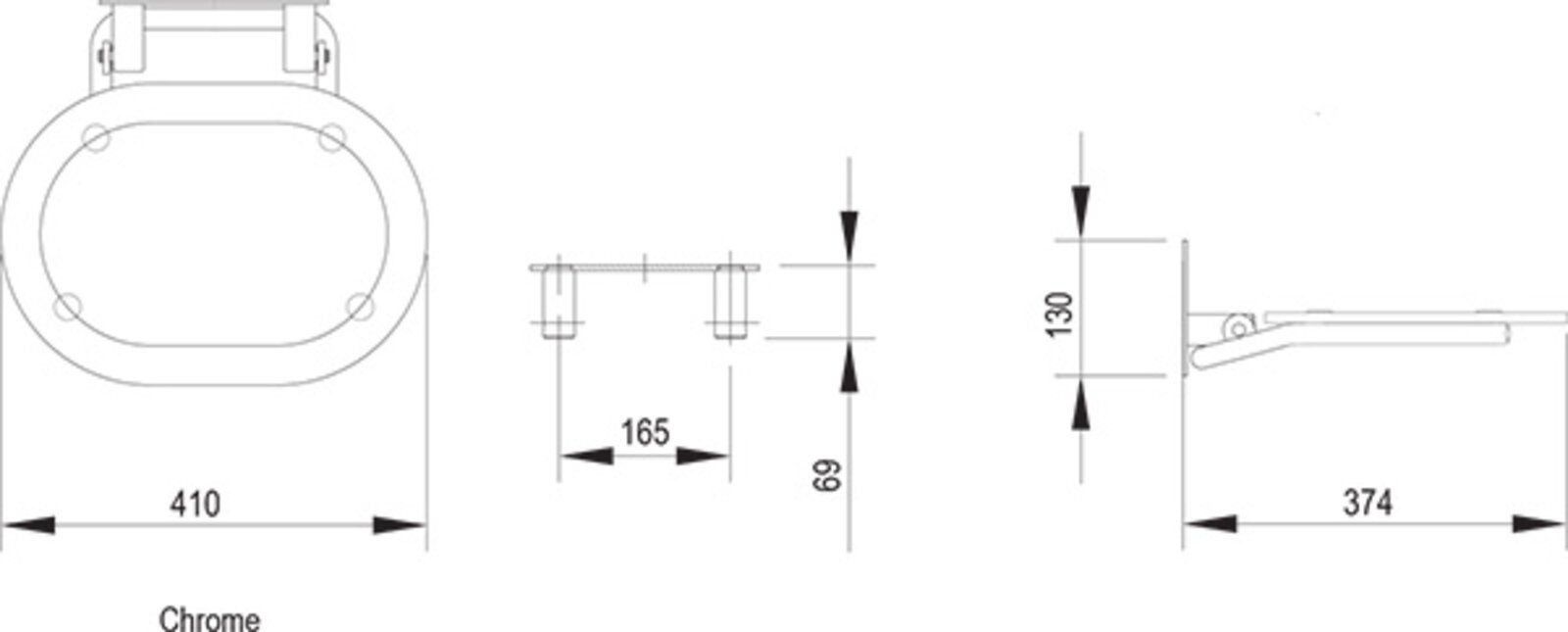 Sedátko Chrome je vhodné instalovat do sprchovacích prostorů od rozměru 90x90 cm.