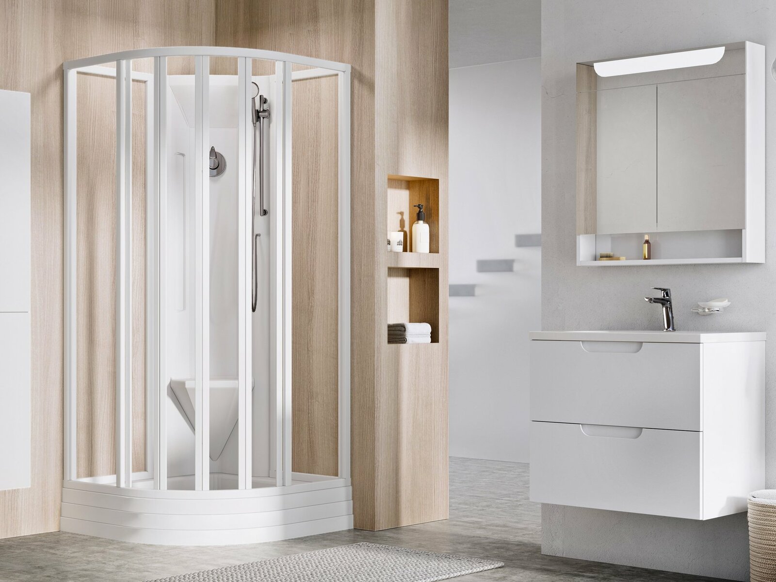 Součástí boxu je sprchová vanička Ronda, sifon Basic, sprchová baterie, sprchová růžice a sprchová hadice.