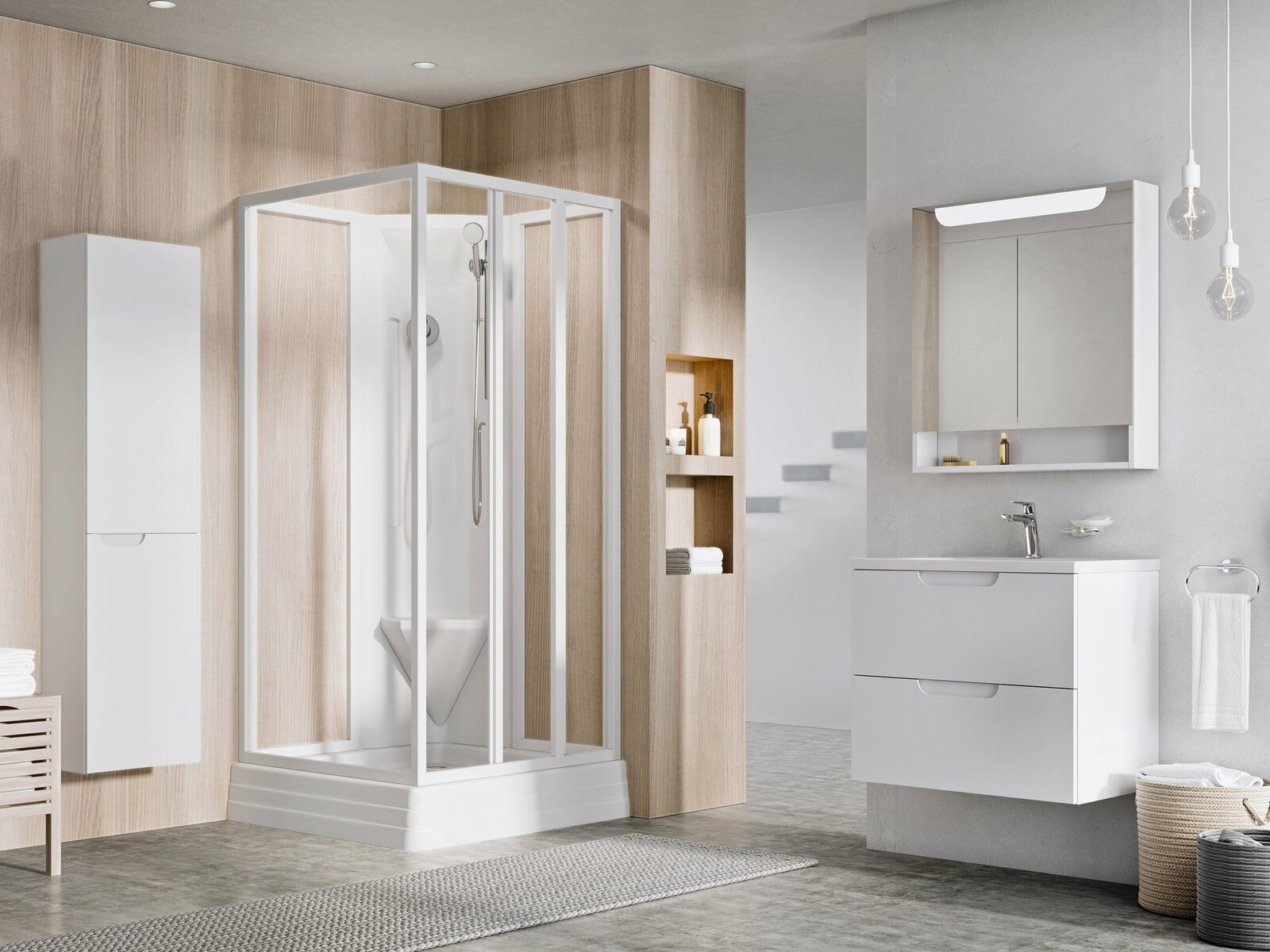 Součástí boxu je sprchová vanička Angela, sifon Basic, sprchová baterie, sprchová růžice a sprchová hadice.