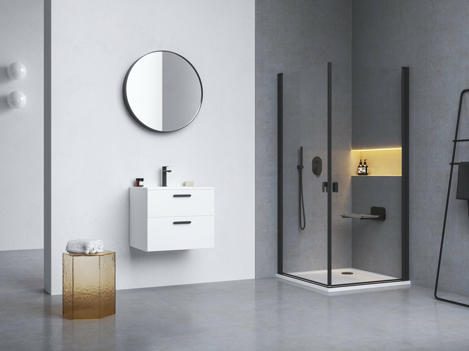Sprchový kout je složen ze dvou samostatných sprchových dveří.