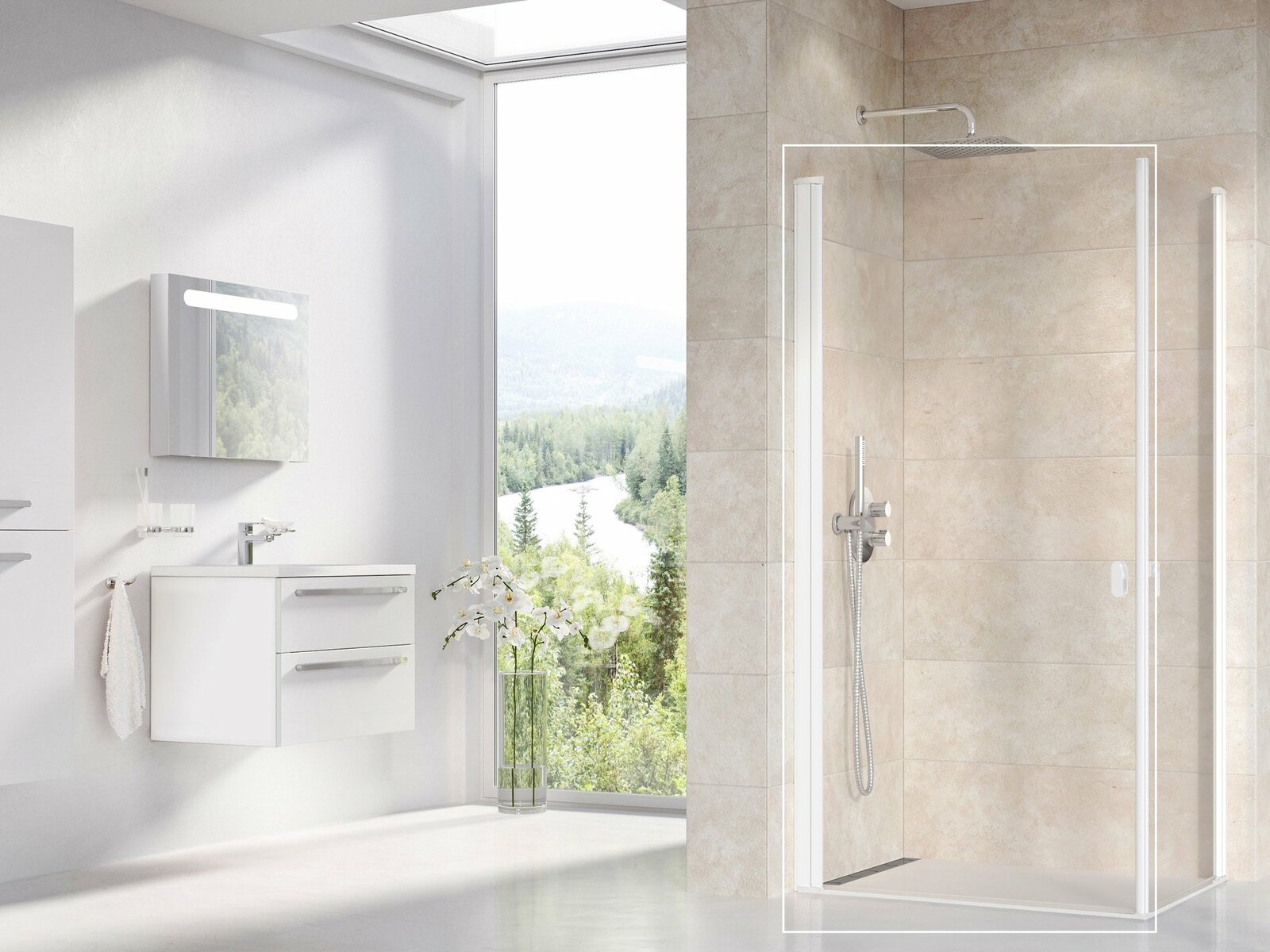 Polovina rohového sprchového koutu Chrome v provedení bílá matná a s výplní z čirého skla s ochrannou vrstvou Ravak AntiCalc®. Pro druhou polovinu rohového sprchového koutu se výrobek kombinuje s CRV1, CRV2 nebo CPS. Pantový systém otevírání.- rozměr: 80 cm (1/2 polovina sprchového koutu)